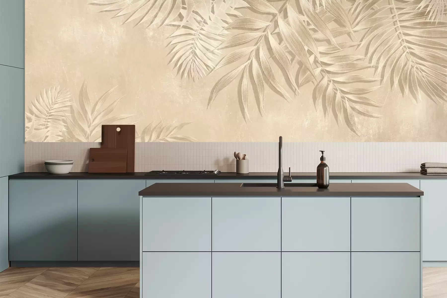 Tropische Blätter in gedeckten GrüntönenFototapete
