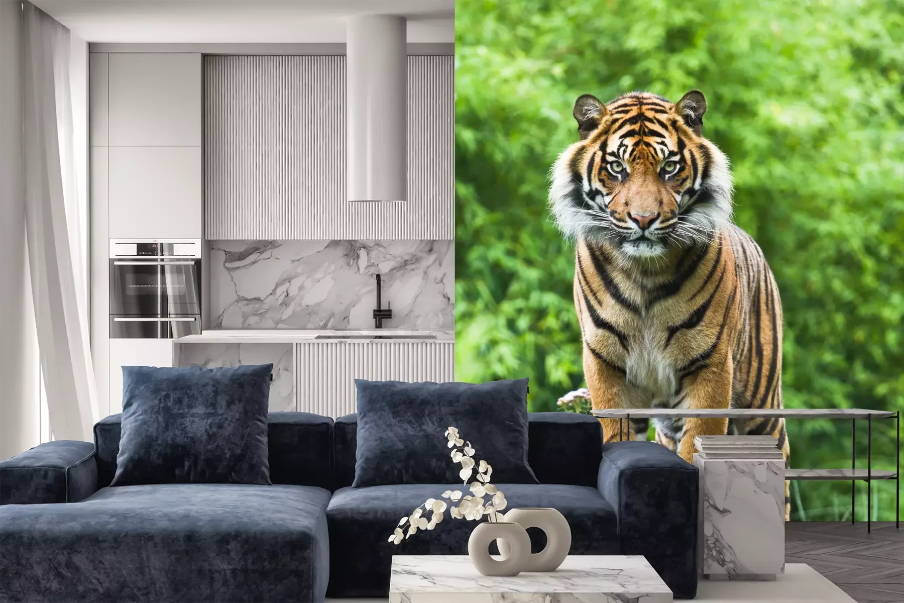 Das Material Premium+ besteht aus einer strukturierten Vinyl-Oberschicht und einem Trägermaterial (Vlies) mit einer Grammatur von 255 g/m², das kleine Unebenheiten der Wand zuverlässig kaschiert. Die feine Sandstruktur verleiht der Oberfläche eine luxuriöse Haptik, während das halbmatte Finish die Tiefe der Farben betont. Das Material ist dampfdurchlässig – so kann diese Fototapete auch in Küchen und Badezimmern eingesetzt werden. Die maximale Breite einer Tapetenbahn beträgt 100 cm. Bei größeren Abmessungen besteht die Fototapete aus mehreren gleich großen Bahnen. Der Kleber wird direkt auf die Wand aufgetragen, und die Fototapete wird auf Stoß angebracht, was für einen ästhetischen Effekt ohne sichtbare Fugen sorgt. Die Oberfläche ist pflegeleicht und kann bei Bedarf sanft mit einem feuchten Tuch abgewischt werden.