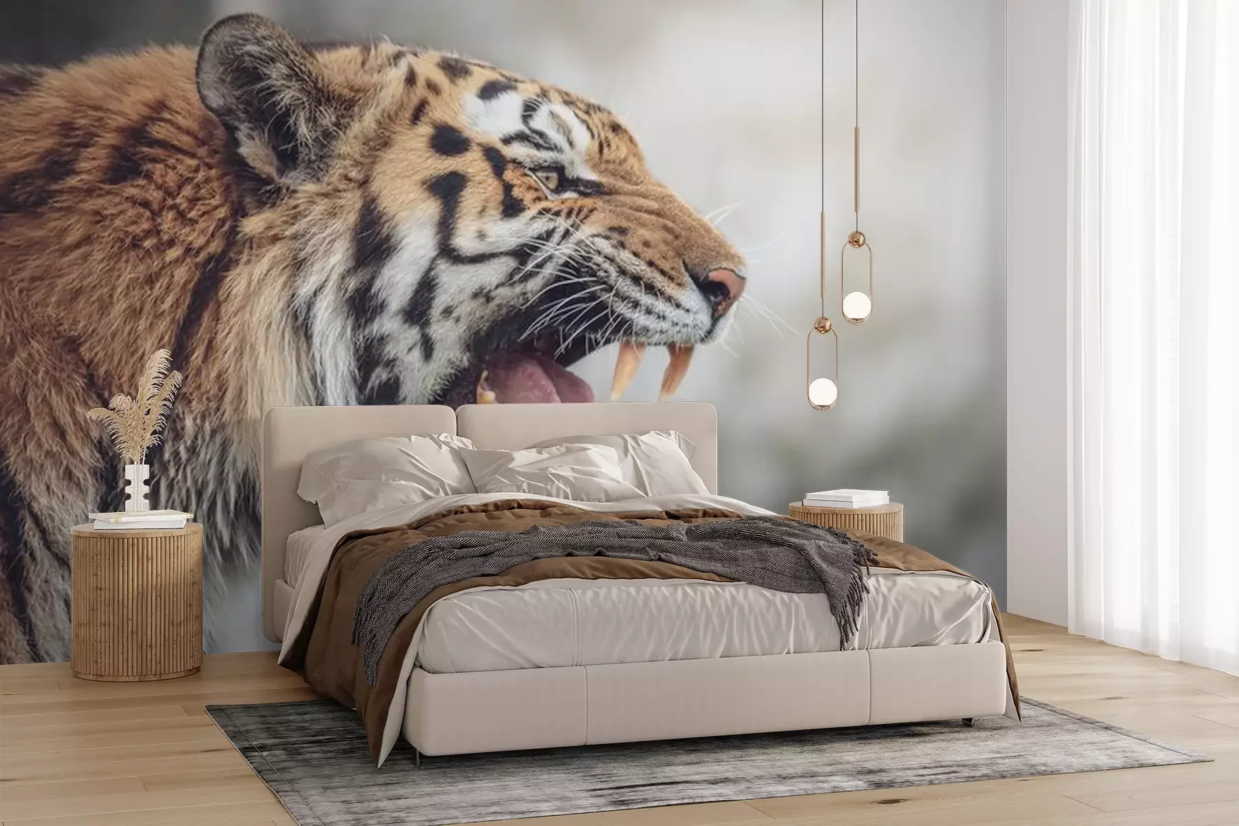 Fototapete Bengalischer Tiger knurrt im Dschungel