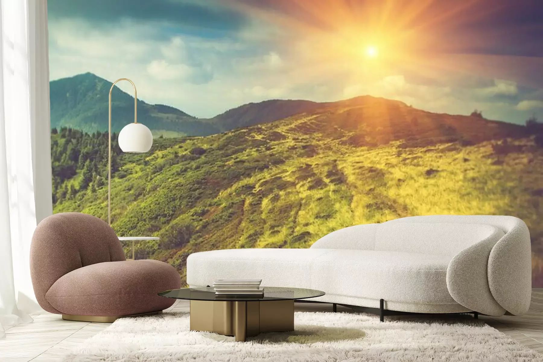 Das Material Premium+ besteht aus einer strukturierten Vinyl-Oberschicht und einem Trägermaterial (Vlies) mit einer Grammatur von 255 g/m², das kleine Unebenheiten der Wand zuverlässig kaschiert. Die feine Sandstruktur verleiht der Oberfläche eine luxuriöse Haptik, während das halbmatte Finish die Tiefe der Farben betont. Das Material ist dampfdurchlässig – so kann diese Fototapete auch in Küchen und Badezimmern eingesetzt werden. Die maximale Breite einer Tapetenbahn beträgt 100 cm. Bei größeren Abmessungen besteht die Fototapete aus mehreren gleich großen Bahnen. Der Kleber wird direkt auf die Wand aufgetragen, und die Fototapete wird auf Stoß angebracht, was für einen ästhetischen Effekt ohne sichtbare Fugen sorgt. Die Oberfläche ist pflegeleicht und kann bei Bedarf sanft mit einem feuchten Tuch abgewischt werden.