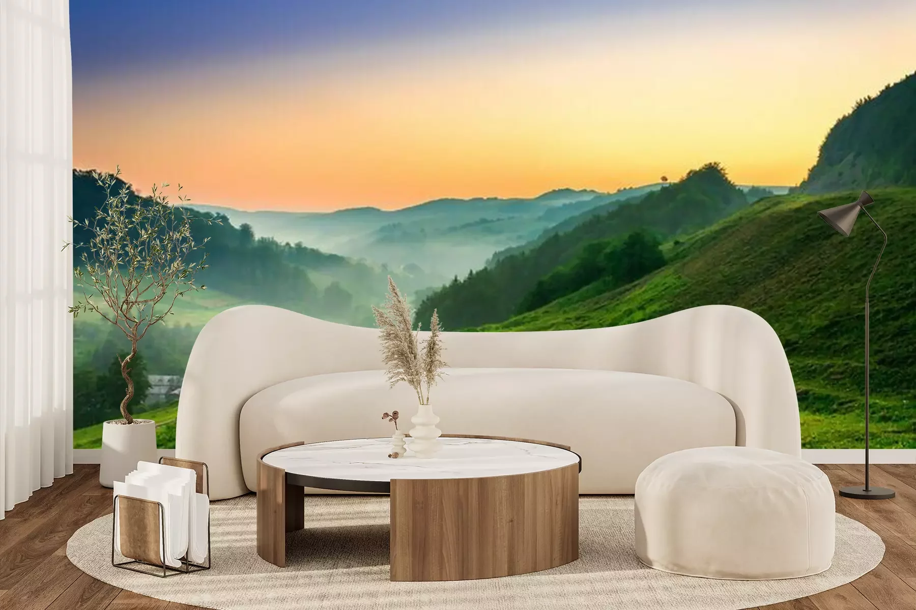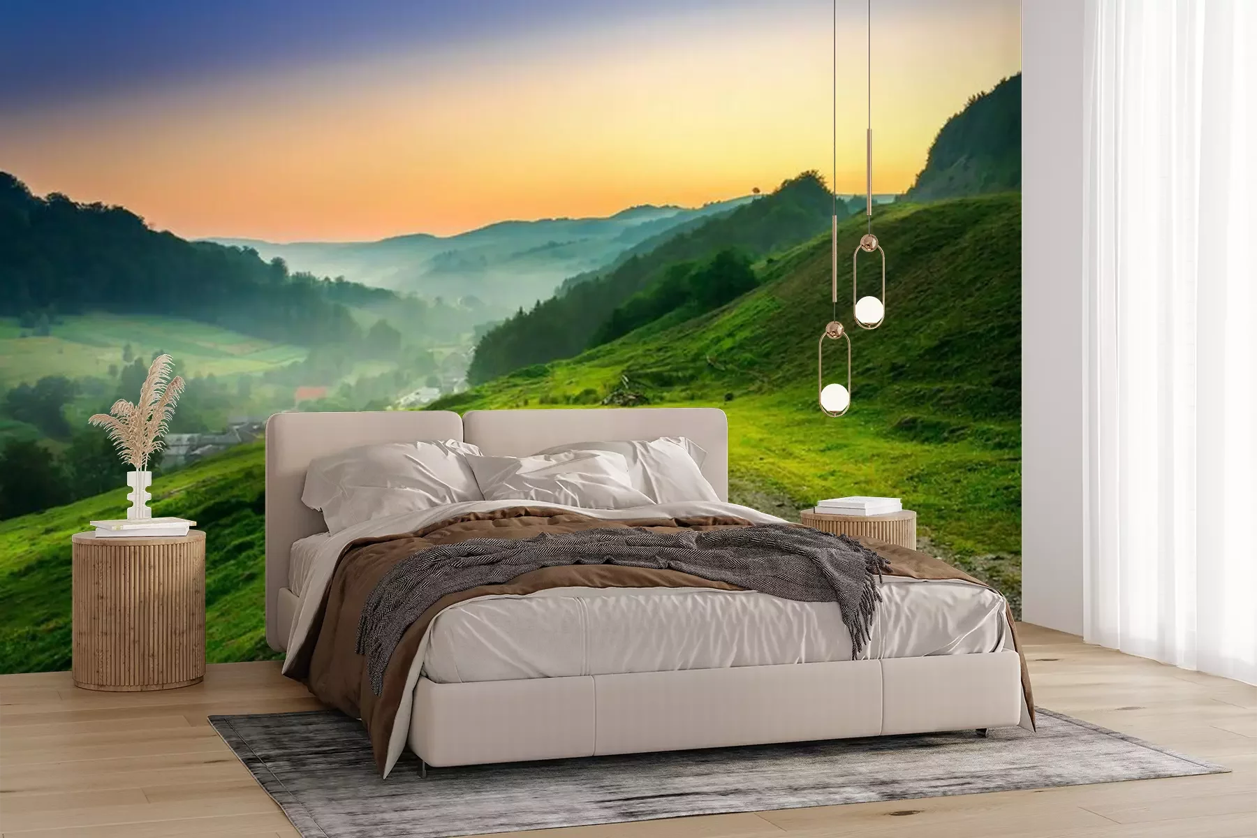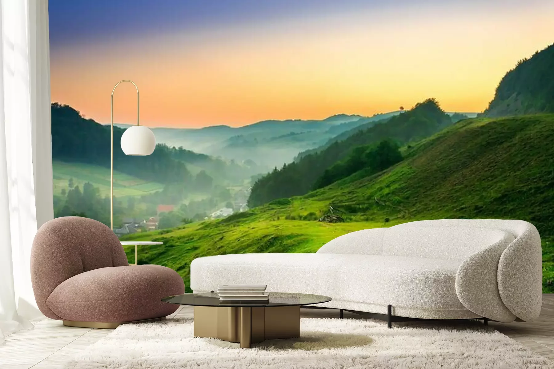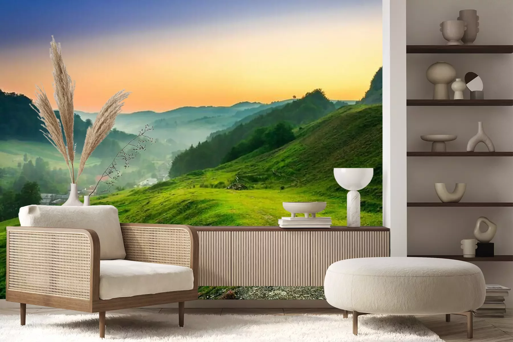 Grünes gras und bäume am berghangProblemlose Lieferung durch vertrauenswürdige Spediteure