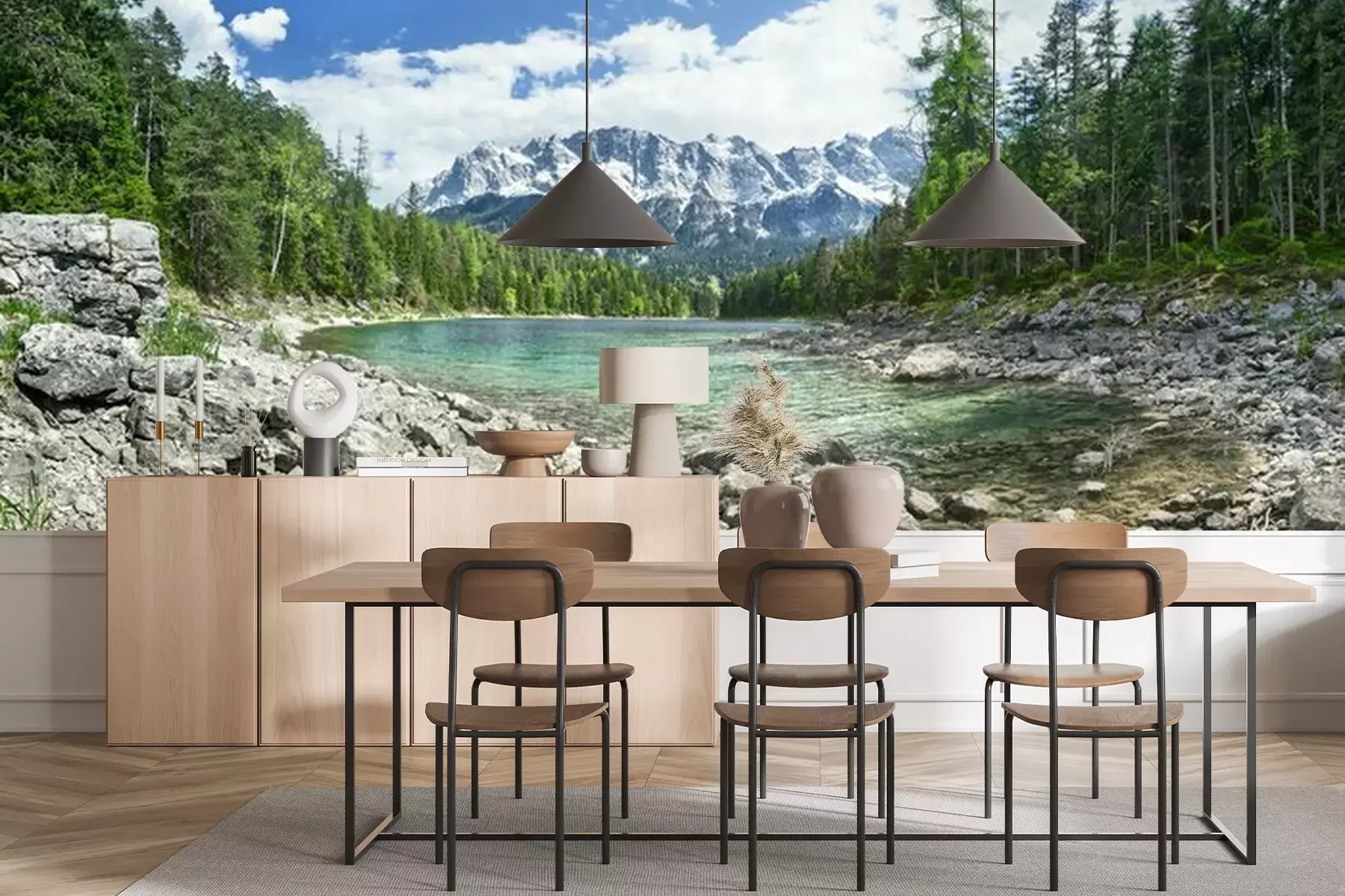 Das Material Premium+ besteht aus einer strukturierten Vinyl-Oberschicht und einem Trägermaterial (Vlies) mit einer Grammatur von 255 g/m², das kleine Unebenheiten der Wand zuverlässig kaschiert. Die feine Sandstruktur verleiht der Oberfläche eine luxuriöse Haptik, während das halbmatte Finish die Tiefe der Farben betont. Das Material ist dampfdurchlässig – so kann diese Fototapete auch in Küchen und Badezimmern eingesetzt werden. Die maximale Breite einer Tapetenbahn beträgt 100 cm. Bei größeren Abmessungen besteht die Fototapete aus mehreren gleich großen Bahnen. Der Kleber wird direkt auf die Wand aufgetragen, und die Fototapete wird auf Stoß angebracht, was für einen ästhetischen Effekt ohne sichtbare Fugen sorgt. Die Oberfläche ist pflegeleicht und kann bei Bedarf sanft mit einem feuchten Tuch abgewischt werden.