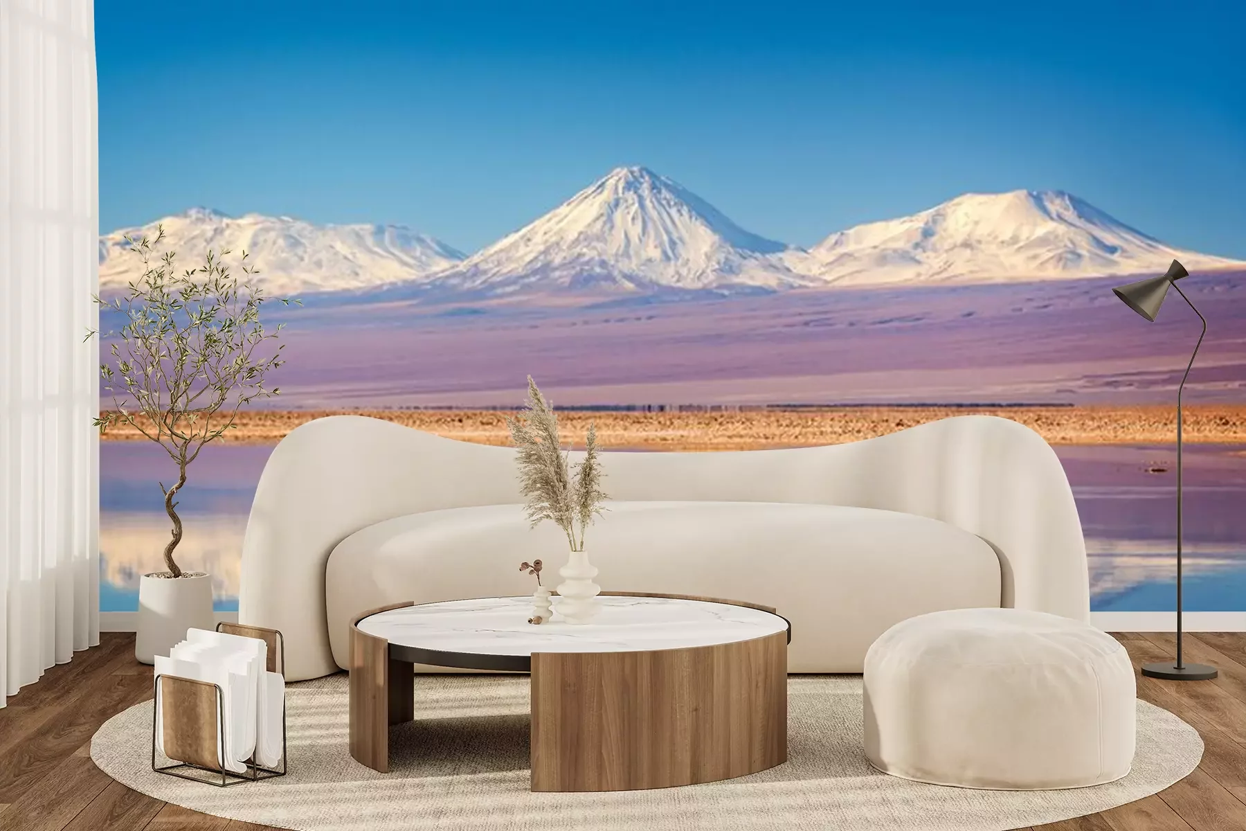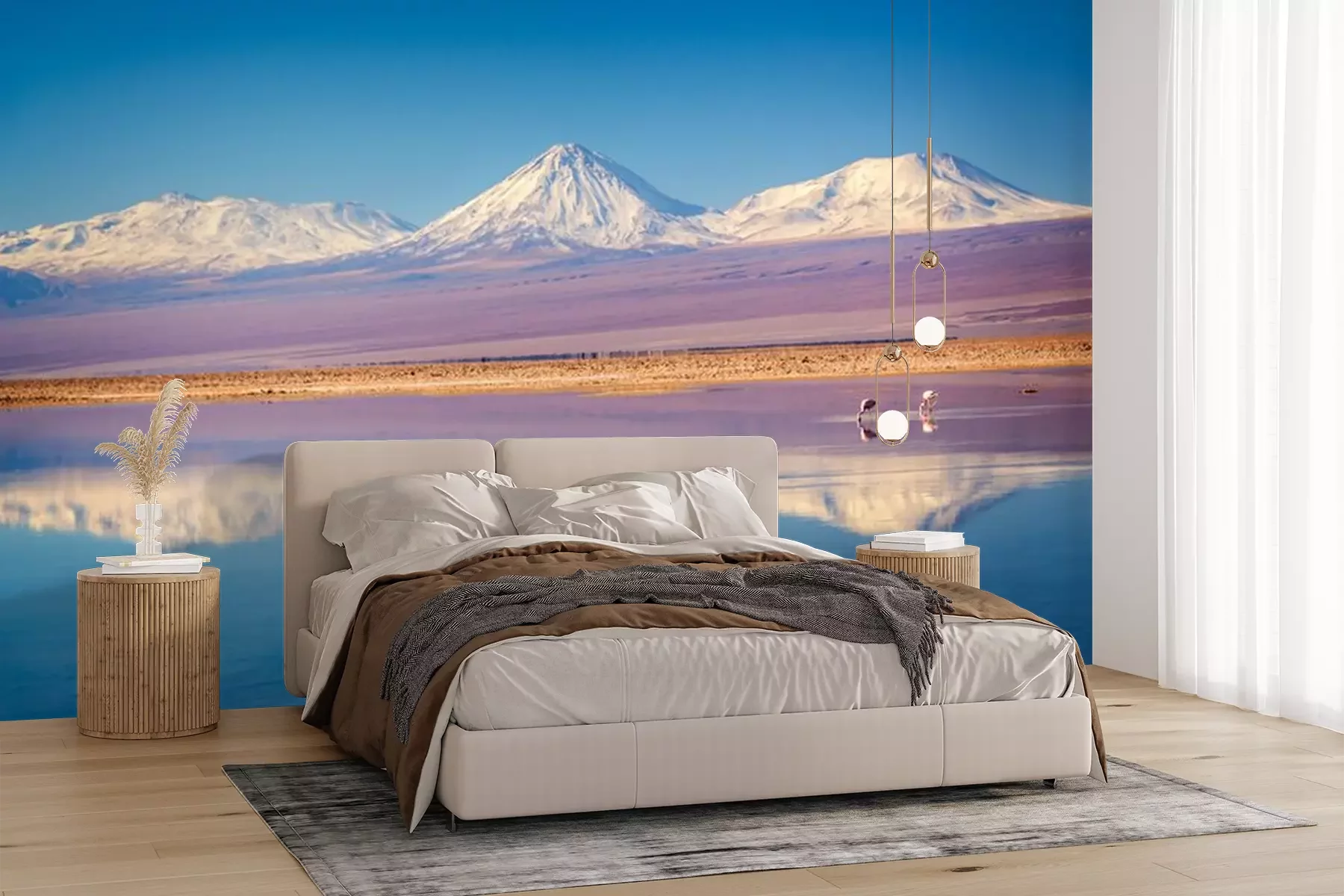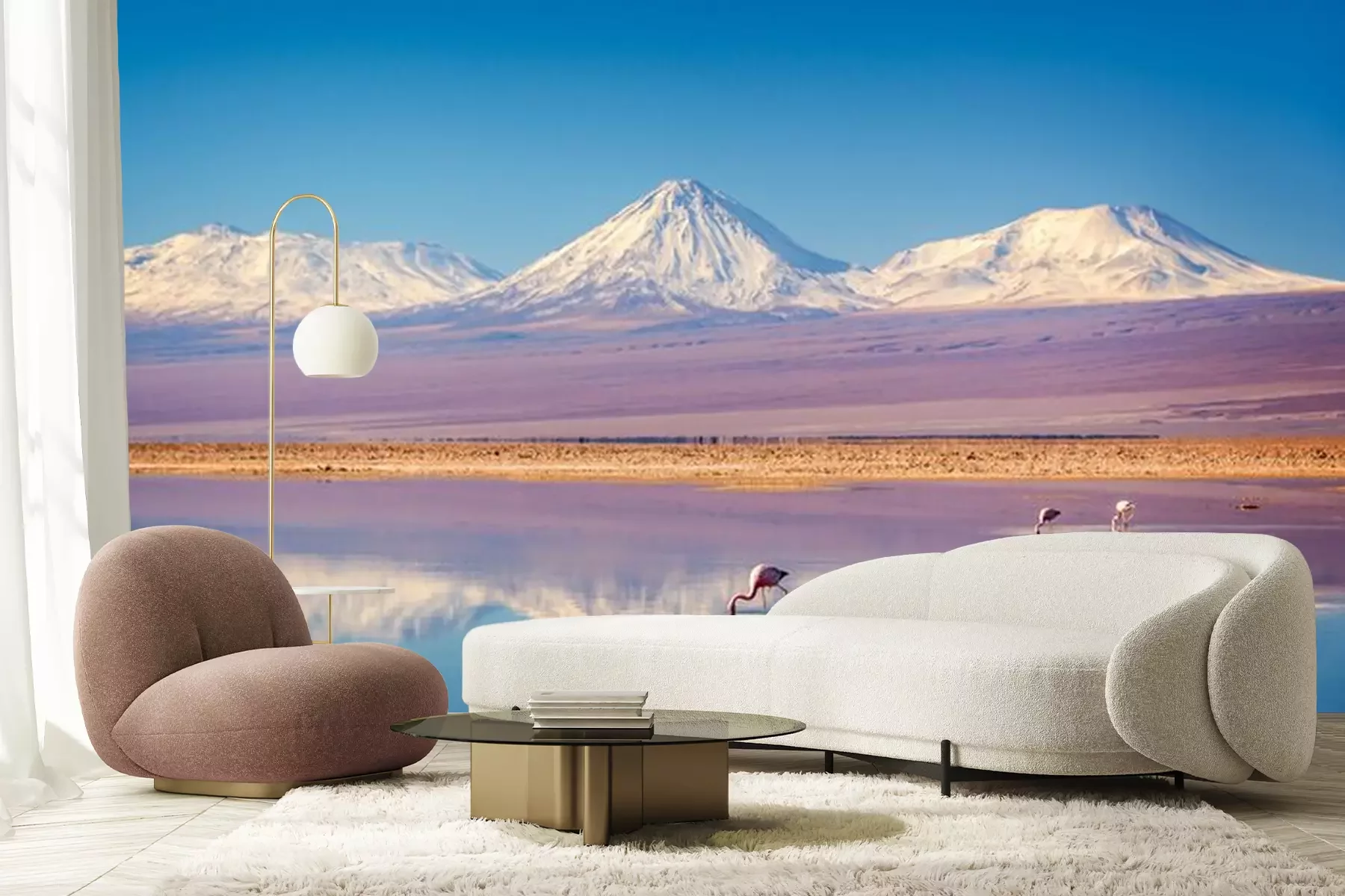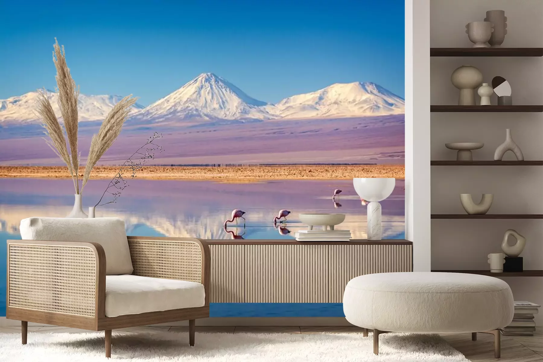 Fototapete Bergpanorama mit flamingos