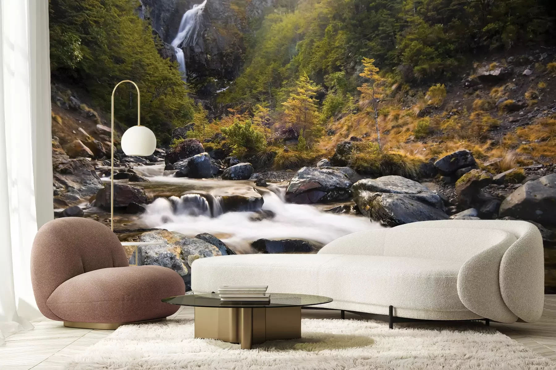Das Material Premium+ besteht aus einer strukturierten Vinyl-Oberschicht und einem Trägermaterial (Vlies) mit einer Grammatur von 255 g/m², das kleine Unebenheiten der Wand zuverlässig kaschiert. Die feine Sandstruktur verleiht der Oberfläche eine luxuriöse Haptik, während das halbmatte Finish die Tiefe der Farben betont. Das Material ist dampfdurchlässig – so kann diese Fototapete auch in Küchen und Badezimmern eingesetzt werden. Die maximale Breite einer Tapetenbahn beträgt 100 cm. Bei größeren Abmessungen besteht die Fototapete aus mehreren gleich großen Bahnen. Der Kleber wird direkt auf die Wand aufgetragen, und die Fototapete wird auf Stoß angebracht, was für einen ästhetischen Effekt ohne sichtbare Fugen sorgt. Die Oberfläche ist pflegeleicht und kann bei Bedarf sanft mit einem feuchten Tuch abgewischt werden.
