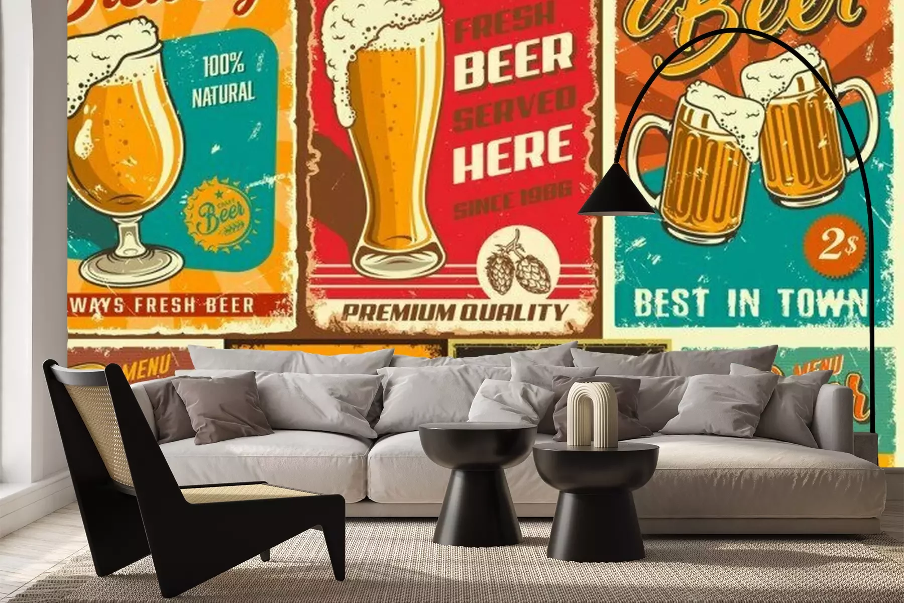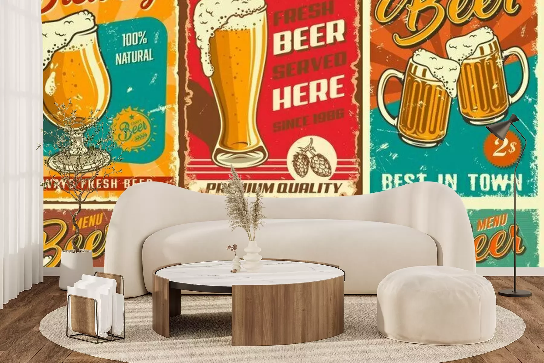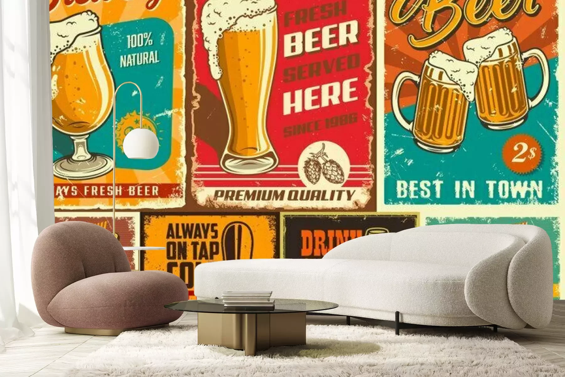 Fototapete Bier im Glas auf dem Vintage-Motiv