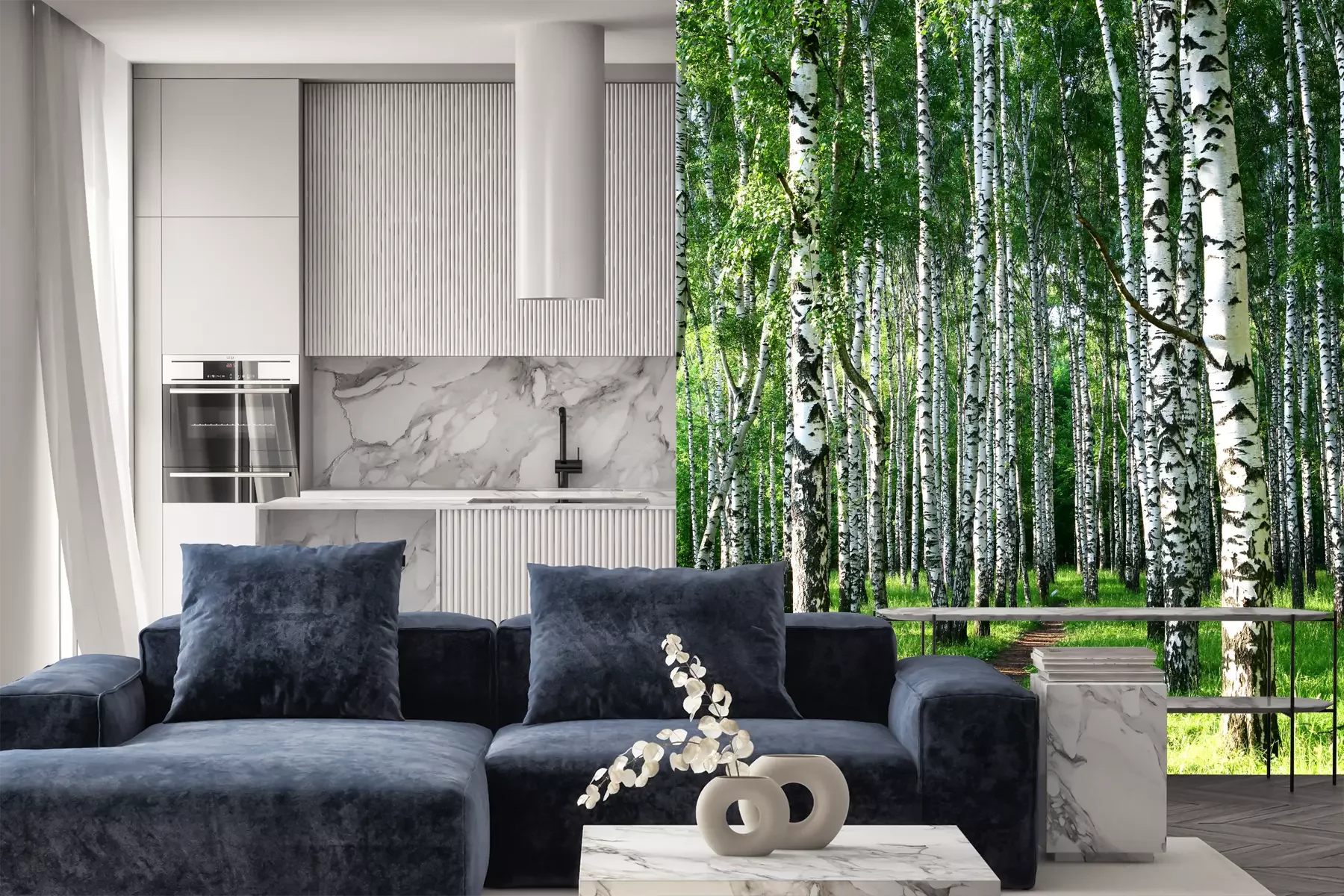Birken auf der WieseFototapete