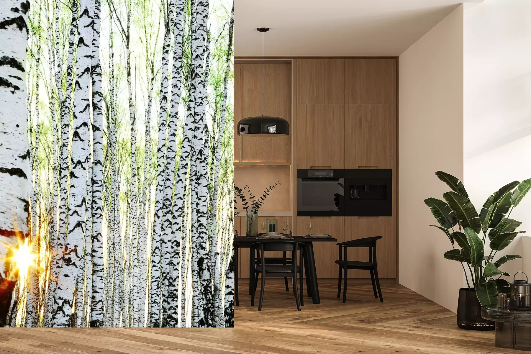 Das Material Premium+ besteht aus einer strukturierten Vinyl-Oberschicht und einem Trägermaterial (Vlies) mit einer Grammatur von 255 g/m², das kleine Unebenheiten der Wand zuverlässig kaschiert. Die feine Sandstruktur verleiht der Oberfläche eine luxuriöse Haptik, während das halbmatte Finish die Tiefe der Farben betont. Das Material ist dampfdurchlässig – so kann diese Fototapete auch in Küchen und Badezimmern eingesetzt werden. Die maximale Breite einer Tapetenbahn beträgt 100 cm. Bei größeren Abmessungen besteht die Fototapete aus mehreren gleich großen Bahnen. Der Kleber wird direkt auf die Wand aufgetragen, und die Fototapete wird auf Stoß angebracht, was für einen ästhetischen Effekt ohne sichtbare Fugen sorgt. Die Oberfläche ist pflegeleicht und kann bei Bedarf sanft mit einem feuchten Tuch abgewischt werden.