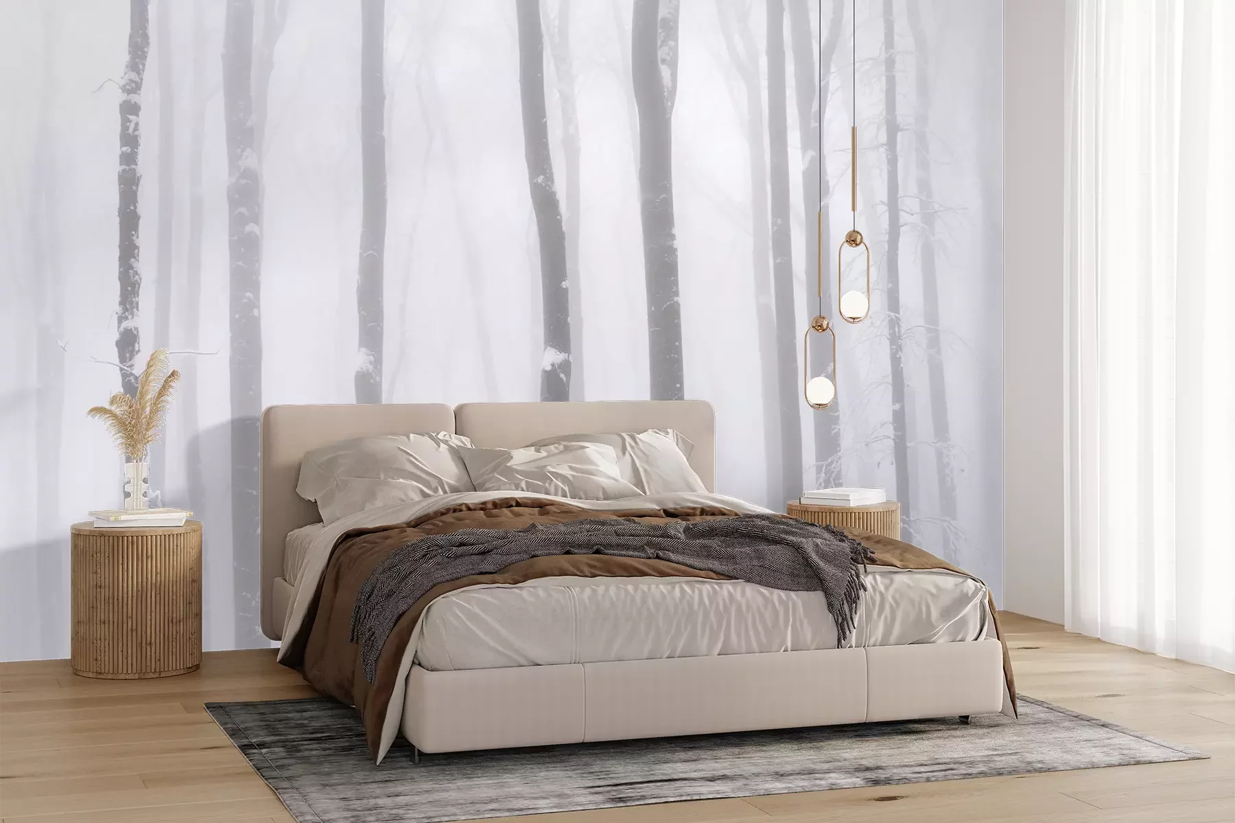 Die Fototapeten werden in Bahnen geliefert. Die Größe und die Anzahl der Bahnen, aus denen die gesamte Fototapete besteht, hängen vom gewählten Material ab. Wenn die Größe die maximale Breite des Materials überschreitet, besteht der Ausdruck aus mehreren gleich großen Bahnen.