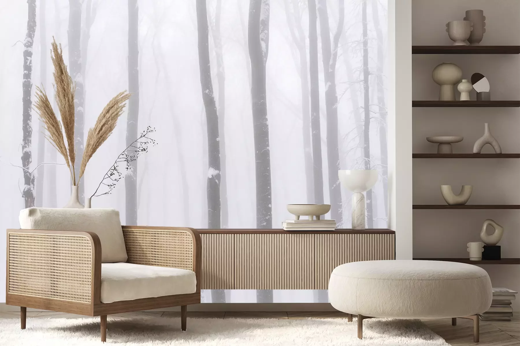 Das Material Premium+ besteht aus einer strukturierten Vinyl-Oberschicht und einem Trägermaterial (Vlies) mit einer Grammatur von 255 g/m², das kleine Unebenheiten der Wand zuverlässig kaschiert. Die feine Sandstruktur verleiht der Oberfläche eine luxuriöse Haptik, während das halbmatte Finish die Tiefe der Farben betont. Das Material ist dampfdurchlässig – so kann diese Fototapete auch in Küchen und Badezimmern eingesetzt werden. Die maximale Breite einer Tapetenbahn beträgt 100 cm. Bei größeren Abmessungen besteht die Fototapete aus mehreren gleich großen Bahnen. Der Kleber wird direkt auf die Wand aufgetragen, und die Fototapete wird auf Stoß angebracht, was für einen ästhetischen Effekt ohne sichtbare Fugen sorgt. Die Oberfläche ist pflegeleicht und kann bei Bedarf sanft mit einem feuchten Tuch abgewischt werden.