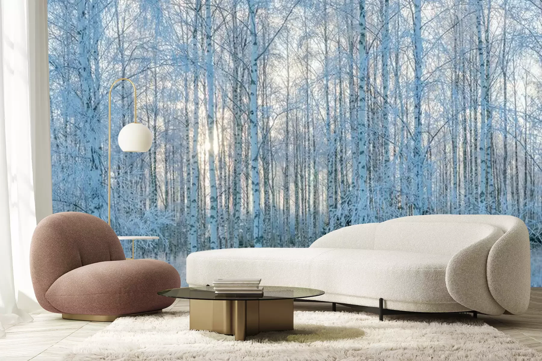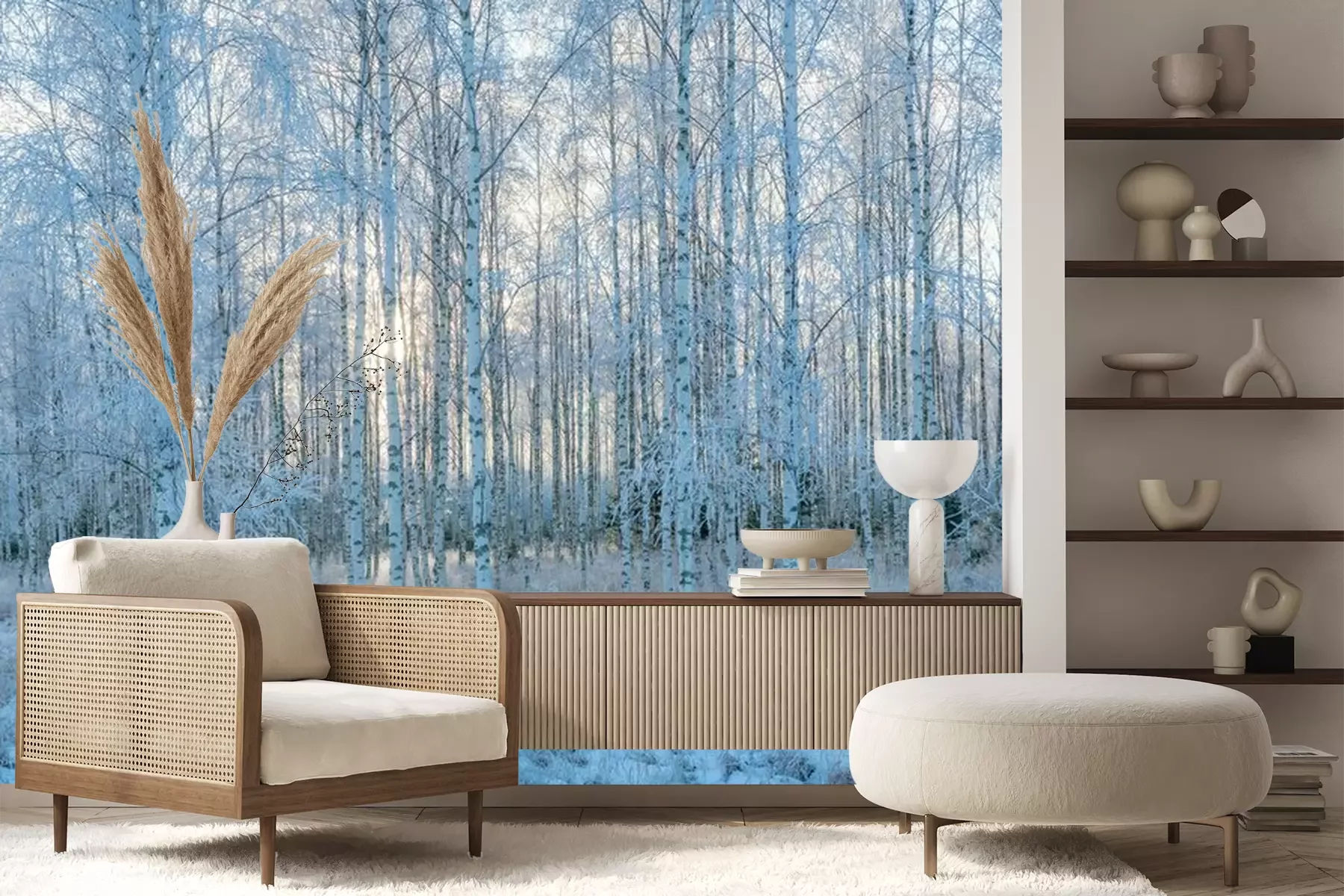 Fototapete Birken im Winter am Morgen