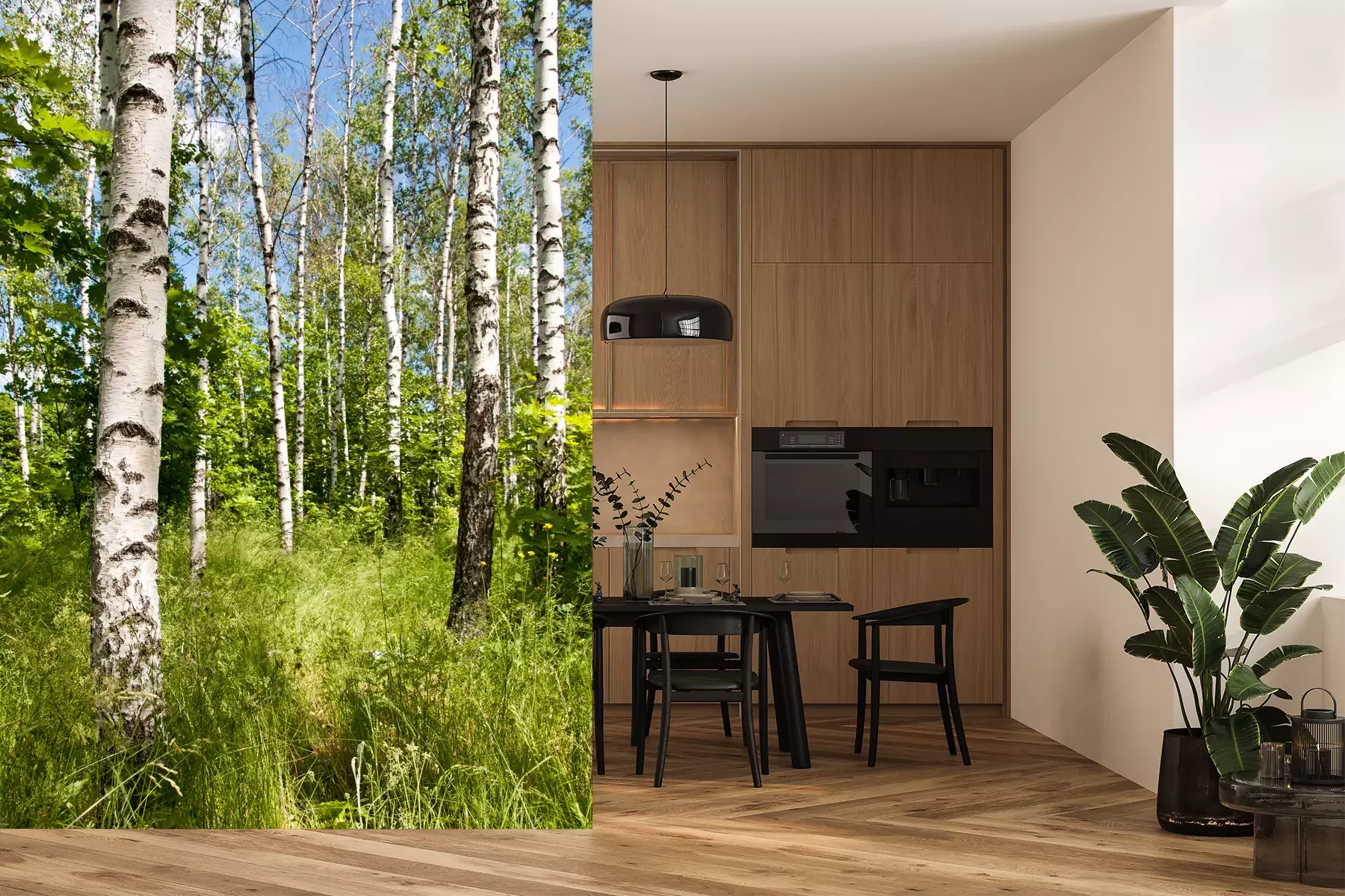 Das Material Premium+ besteht aus einer strukturierten Vinyl-Oberschicht und einem Trägermaterial (Vlies) mit einer Grammatur von 255 g/m², das kleine Unebenheiten der Wand zuverlässig kaschiert. Die feine Sandstruktur verleiht der Oberfläche eine luxuriöse Haptik, während das halbmatte Finish die Tiefe der Farben betont. Das Material ist dampfdurchlässig – so kann diese Fototapete auch in Küchen und Badezimmern eingesetzt werden. Die maximale Breite einer Tapetenbahn beträgt 100 cm. Bei größeren Abmessungen besteht die Fototapete aus mehreren gleich großen Bahnen. Der Kleber wird direkt auf die Wand aufgetragen, und die Fototapete wird auf Stoß angebracht, was für einen ästhetischen Effekt ohne sichtbare Fugen sorgt. Die Oberfläche ist pflegeleicht und kann bei Bedarf sanft mit einem feuchten Tuch abgewischt werden.