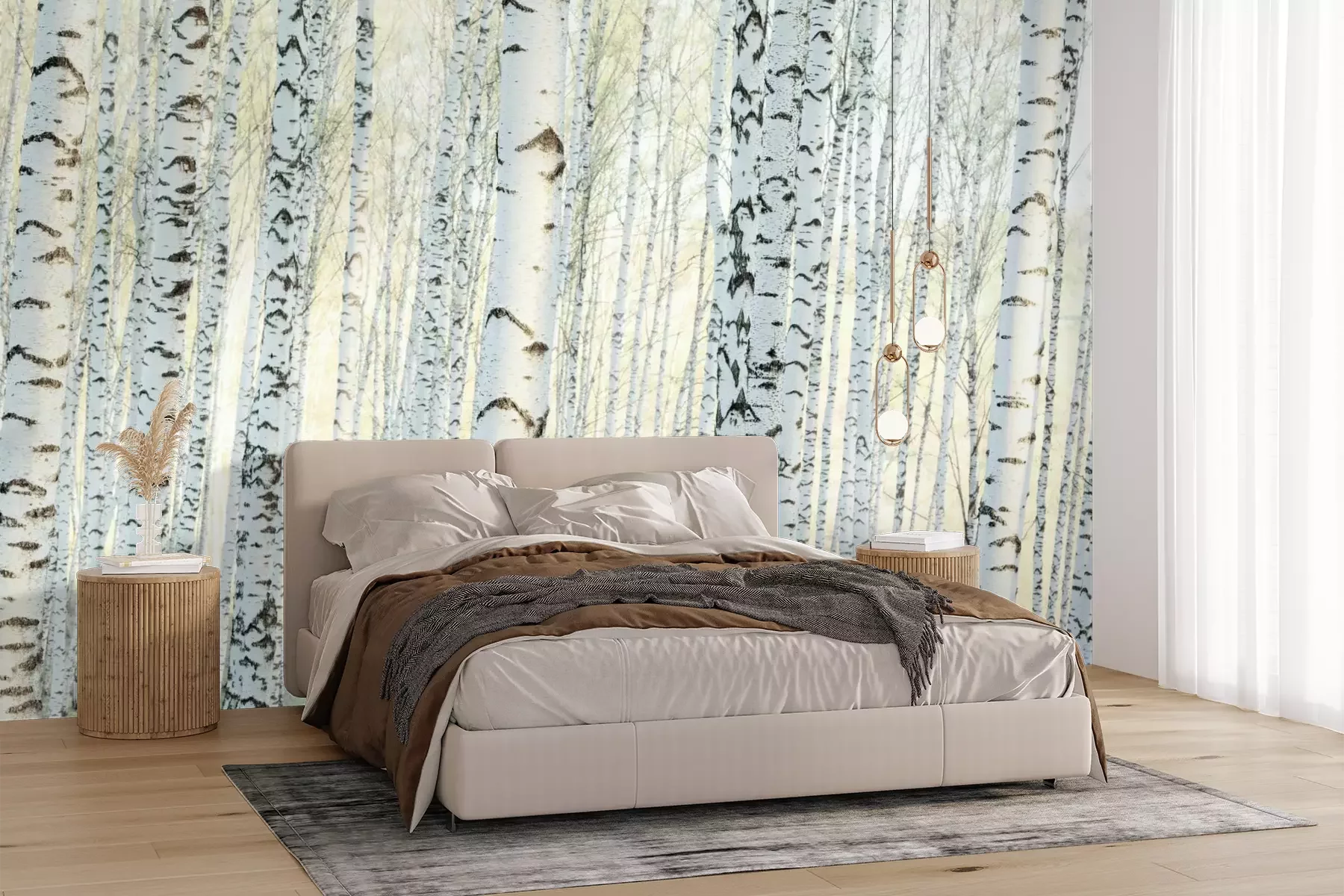 Die Fototapeten werden in Bahnen geliefert. Die Größe und die Anzahl der Bahnen, aus denen die gesamte Fototapete besteht, hängen vom gewählten Material ab. Wenn die Größe die maximale Breite des Materials überschreitet, besteht der Ausdruck aus mehreren gleich großen Bahnen.