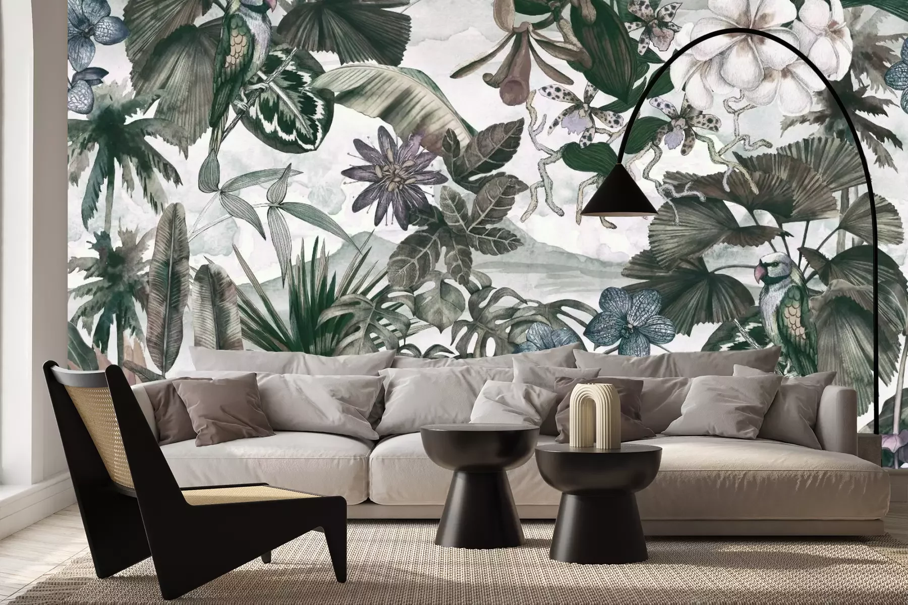 Das Material Premium+ besteht aus einer strukturierten Vinyl-Oberschicht und einem Trägermaterial (Vlies) mit einer Grammatur von 255 g/m², das kleine Unebenheiten der Wand zuverlässig kaschiert. Die feine Sandstruktur verleiht der Oberfläche eine luxuriöse Haptik, während das halbmatte Finish die Tiefe der Farben betont. Das Material ist dampfdurchlässig – so kann diese Fototapete auch in Küchen und Badezimmern eingesetzt werden. Die maximale Breite einer Tapetenbahn beträgt 100 cm. Bei größeren Abmessungen besteht die Fototapete aus mehreren gleich großen Bahnen. Der Kleber wird direkt auf die Wand aufgetragen, und die Fototapete wird auf Stoß angebracht, was für einen ästhetischen Effekt ohne sichtbare Fugen sorgt. Die Oberfläche ist pflegeleicht und kann bei Bedarf sanft mit einem feuchten Tuch abgewischt werden.