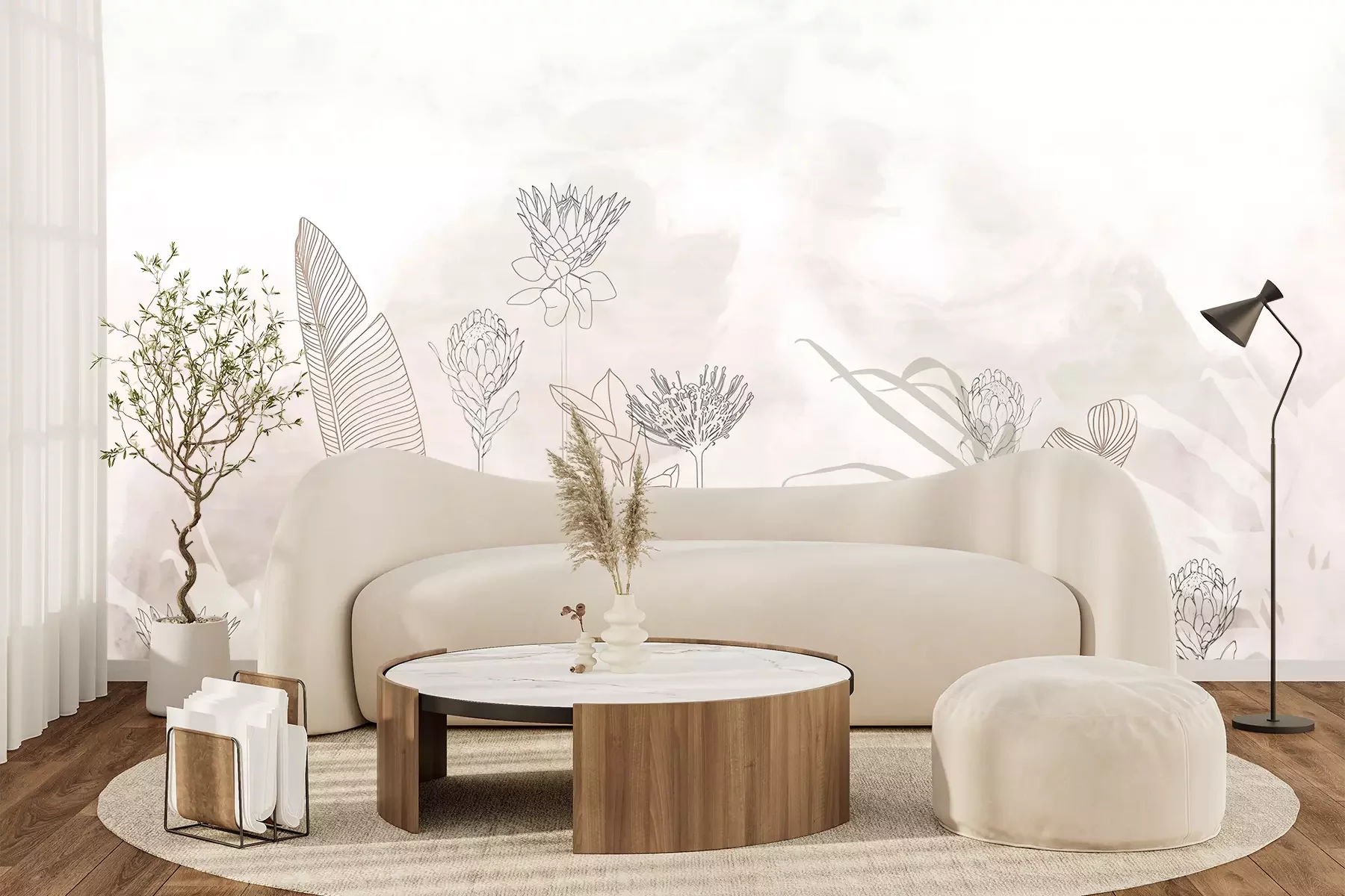 Das Material Premium+ besteht aus einer strukturierten Vinyl-Oberschicht und einem Trägermaterial (Vlies) mit einer Grammatur von 255 g/m², das kleine Unebenheiten der Wand zuverlässig kaschiert. Die feine Sandstruktur verleiht der Oberfläche eine luxuriöse Haptik, während das halbmatte Finish die Tiefe der Farben betont. Das Material ist dampfdurchlässig – so kann diese Fototapete auch in Küchen und Badezimmern eingesetzt werden. Die maximale Breite einer Tapetenbahn beträgt 100 cm. Bei größeren Abmessungen besteht die Fototapete aus mehreren gleich großen Bahnen. Der Kleber wird direkt auf die Wand aufgetragen, und die Fototapete wird auf Stoß angebracht, was für einen ästhetischen Effekt ohne sichtbare Fugen sorgt. Die Oberfläche ist pflegeleicht und kann bei Bedarf sanft mit einem feuchten Tuch abgewischt werden.