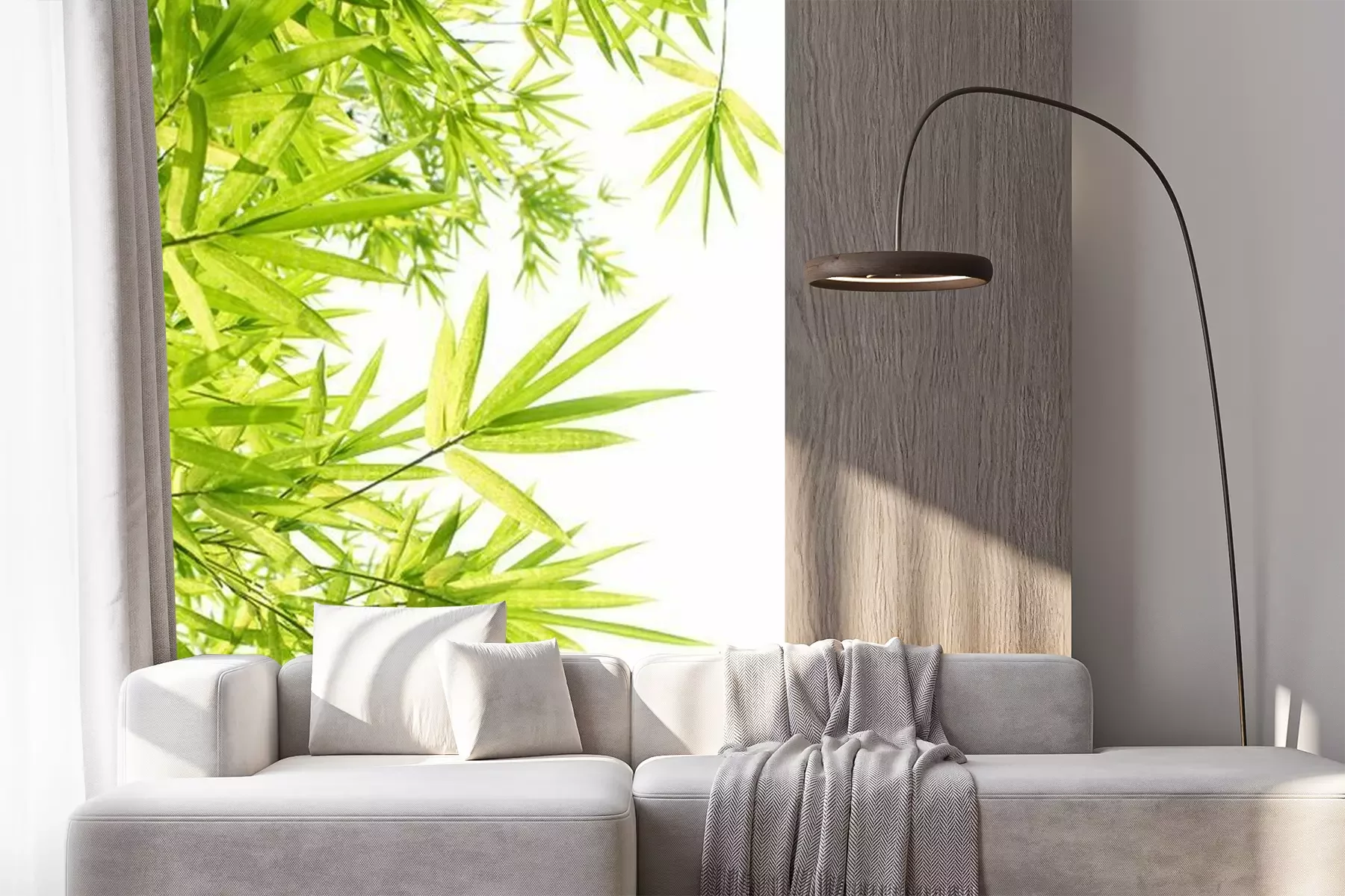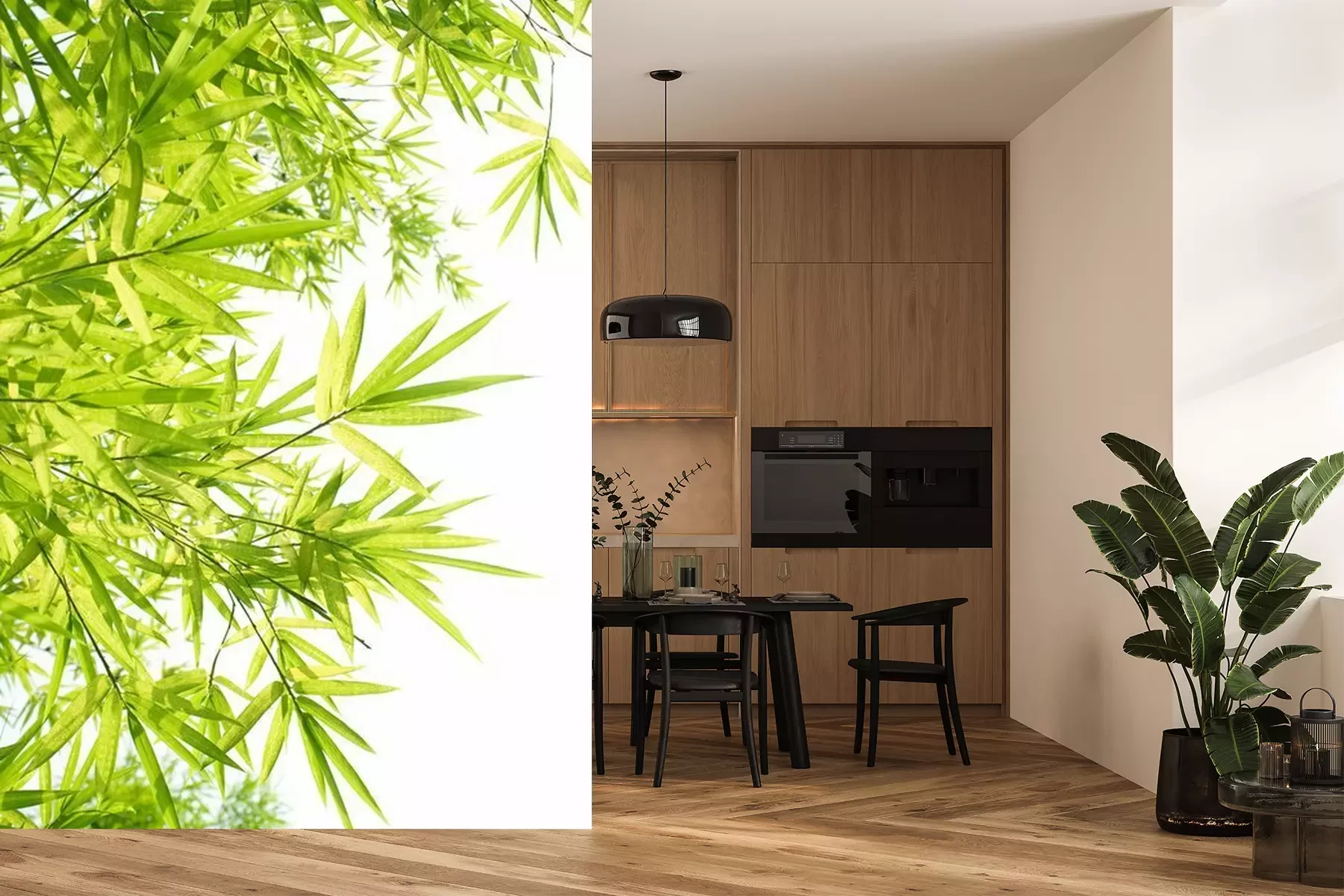 Fototapete Blätter von Bambus am Hintergrund in Weiß