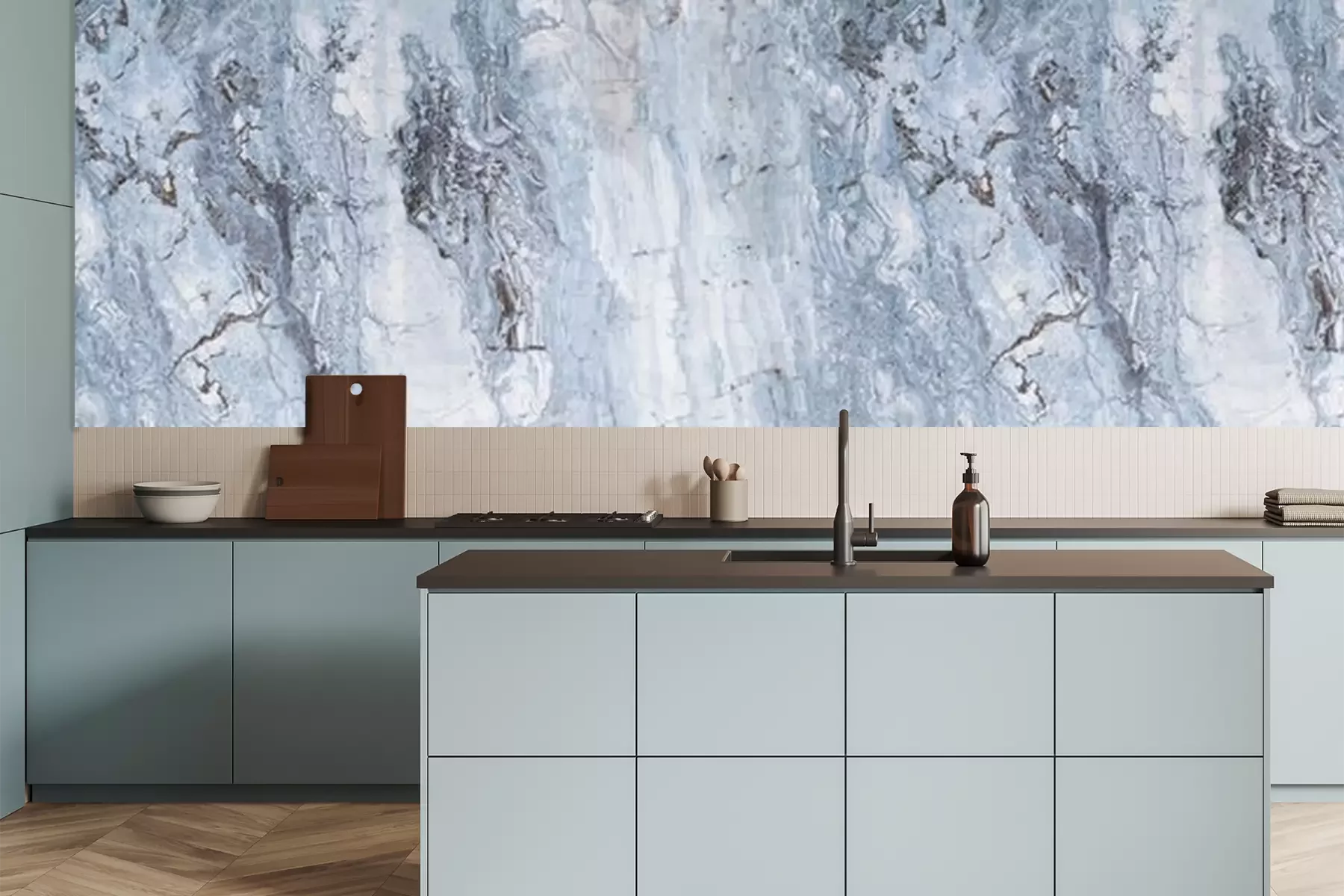 Fototapete Blau grauer Marmor mit Rissen