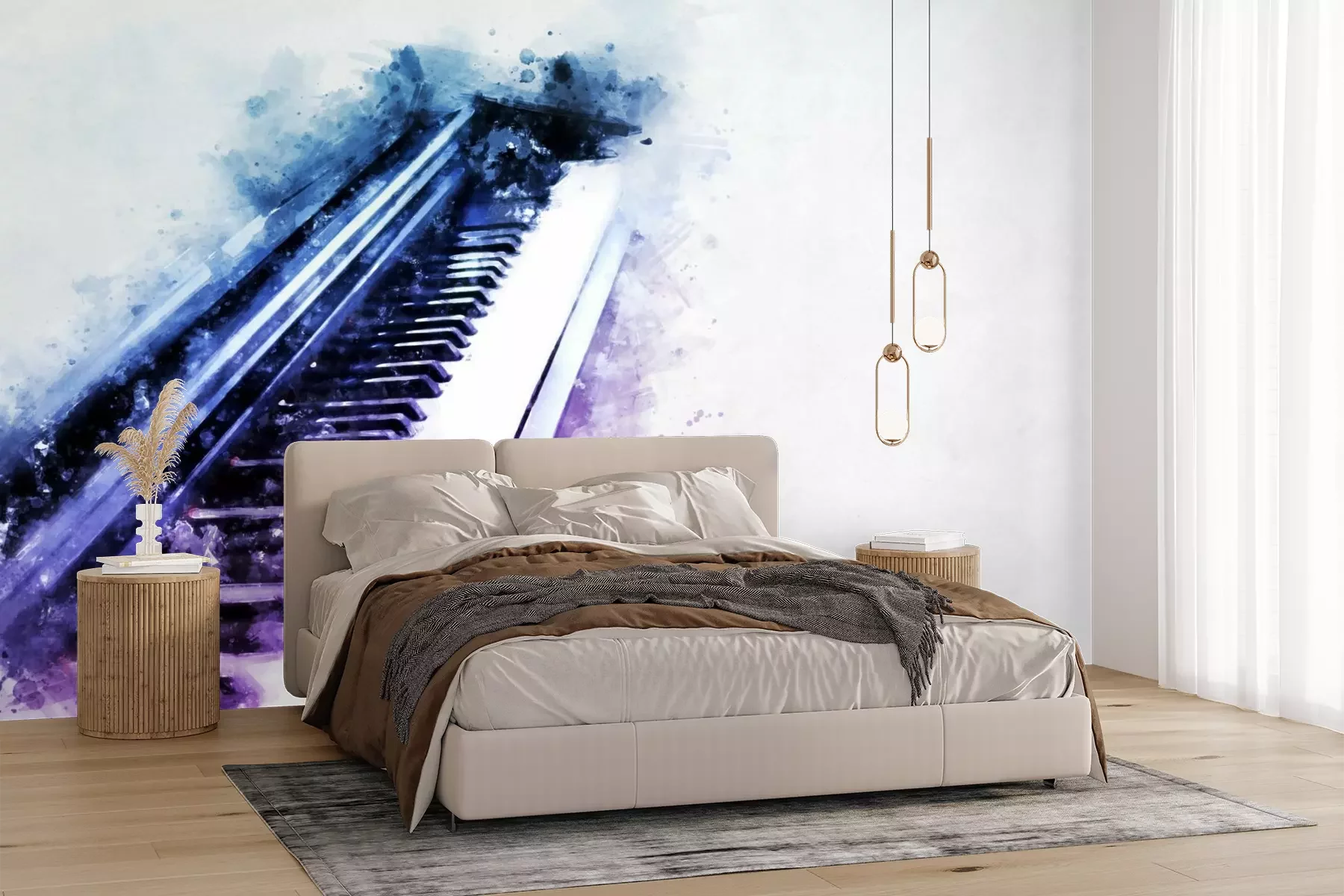 Das Material Premium+ besteht aus einer strukturierten Vinyl-Oberschicht und einem Trägermaterial (Vlies) mit einer Grammatur von 255 g/m², das kleine Unebenheiten der Wand zuverlässig kaschiert. Die feine Sandstruktur verleiht der Oberfläche eine luxuriöse Haptik, während das halbmatte Finish die Tiefe der Farben betont. Das Material ist dampfdurchlässig – so kann diese Fototapete auch in Küchen und Badezimmern eingesetzt werden. Die maximale Breite einer Tapetenbahn beträgt 100 cm. Bei größeren Abmessungen besteht die Fototapete aus mehreren gleich großen Bahnen. Der Kleber wird direkt auf die Wand aufgetragen, und die Fototapete wird auf Stoß angebracht, was für einen ästhetischen Effekt ohne sichtbare Fugen sorgt. Die Oberfläche ist pflegeleicht und kann bei Bedarf sanft mit einem feuchten Tuch abgewischt werden.