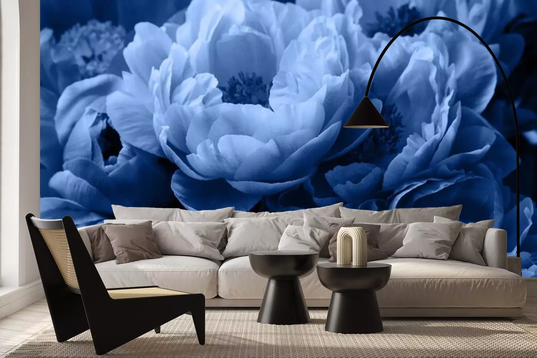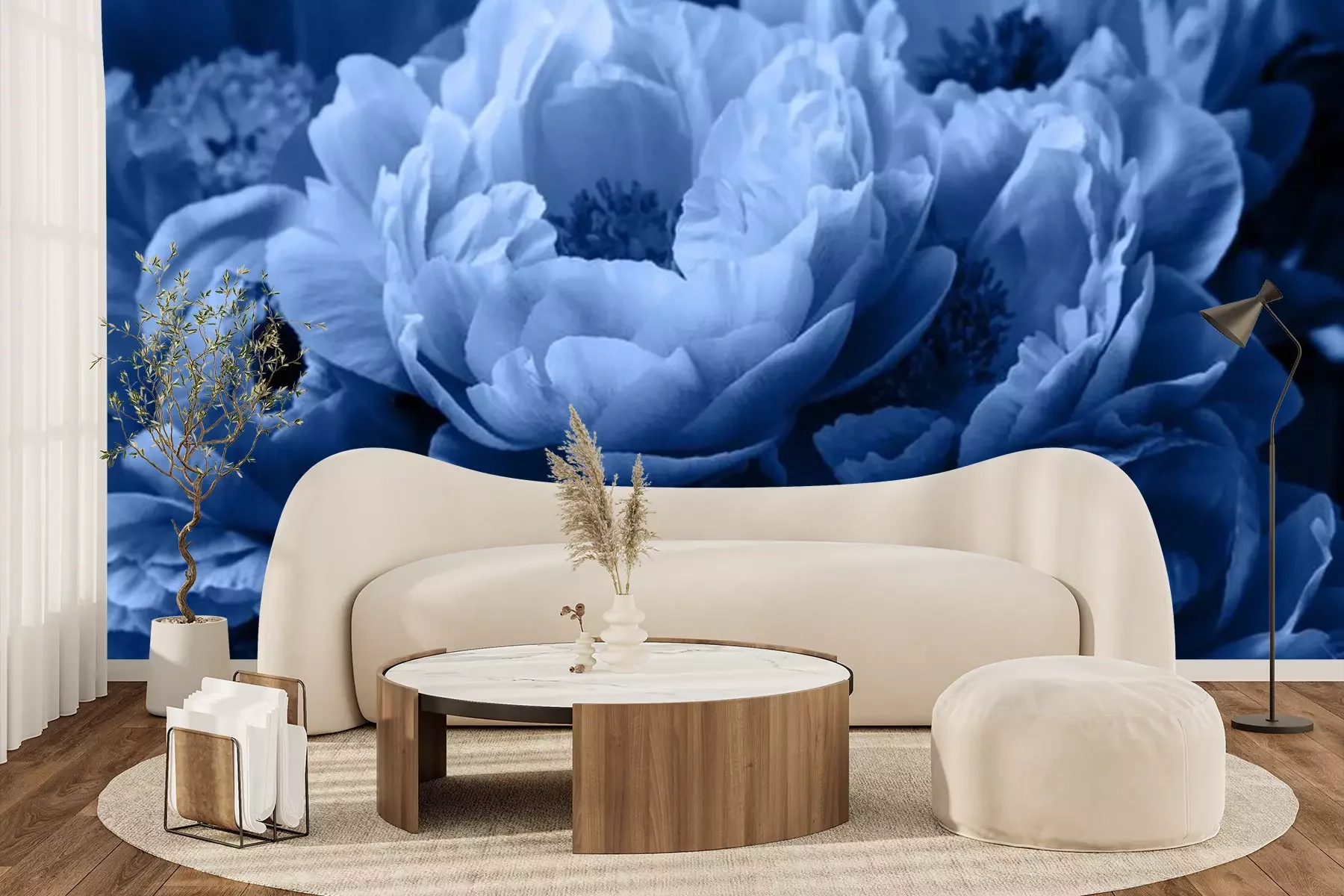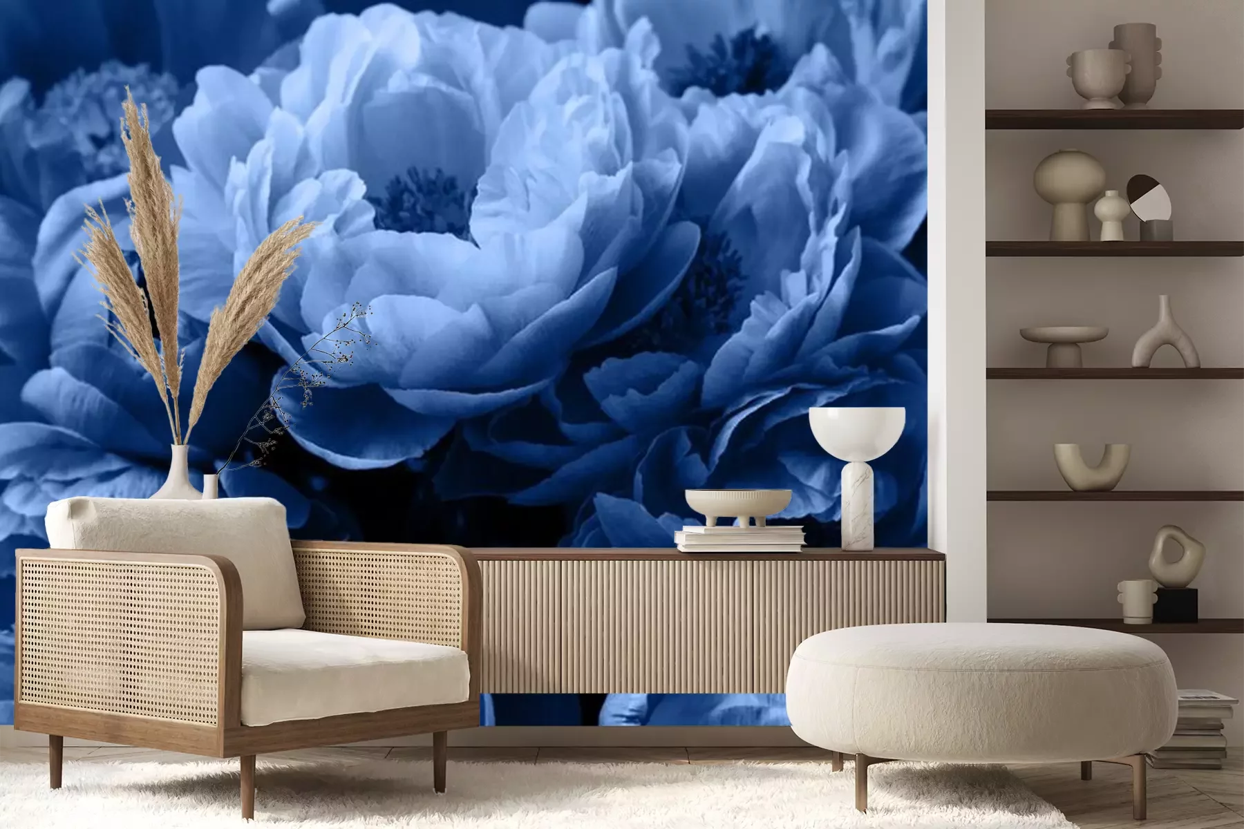 Fototapete Blaue Blütenblätter von Pfingstrosen