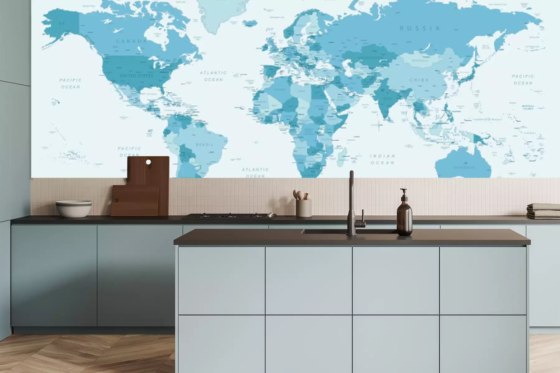 Fototapete Blaue Weltkarte