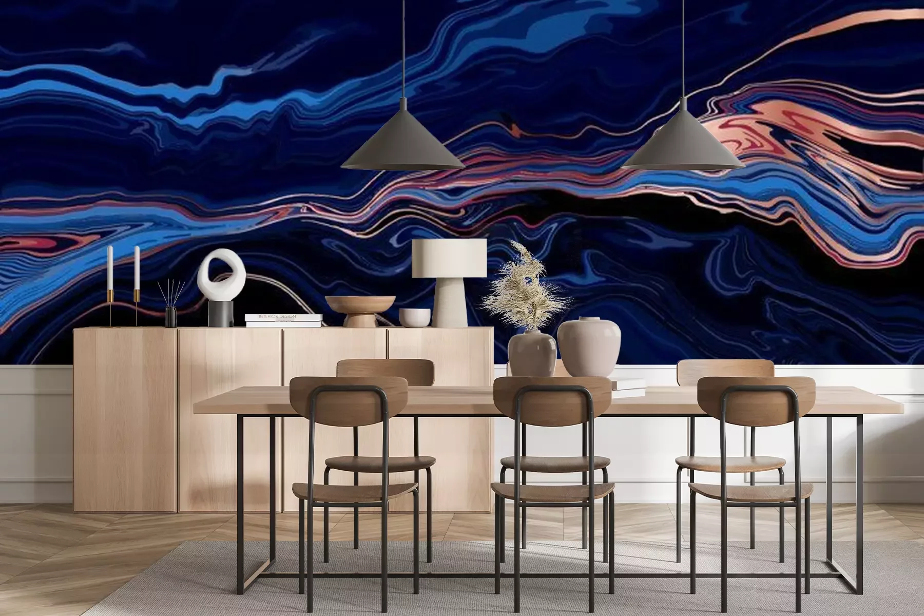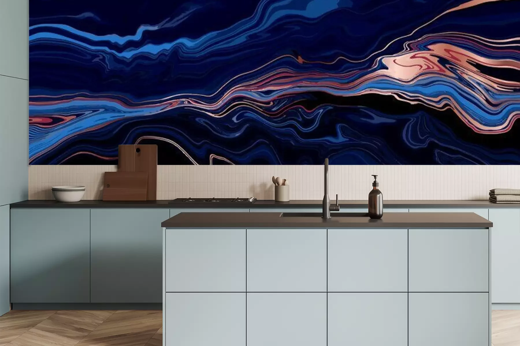 Das Material Premium+ besteht aus einer strukturierten Vinyl-Oberschicht und einem Trägermaterial (Vlies) mit einer Grammatur von 255 g/m², das kleine Unebenheiten der Wand zuverlässig kaschiert. Die feine Sandstruktur verleiht der Oberfläche eine luxuriöse Haptik, während das halbmatte Finish die Tiefe der Farben betont. Das Material ist dampfdurchlässig – so kann diese Fototapete auch in Küchen und Badezimmern eingesetzt werden. Die maximale Breite einer Tapetenbahn beträgt 100 cm. Bei größeren Abmessungen besteht die Fototapete aus mehreren gleich großen Bahnen. Der Kleber wird direkt auf die Wand aufgetragen, und die Fototapete wird auf Stoß angebracht, was für einen ästhetischen Effekt ohne sichtbare Fugen sorgt. Die Oberfläche ist pflegeleicht und kann bei Bedarf sanft mit einem feuchten Tuch abgewischt werden.