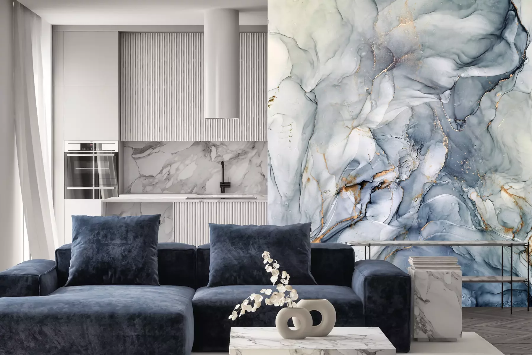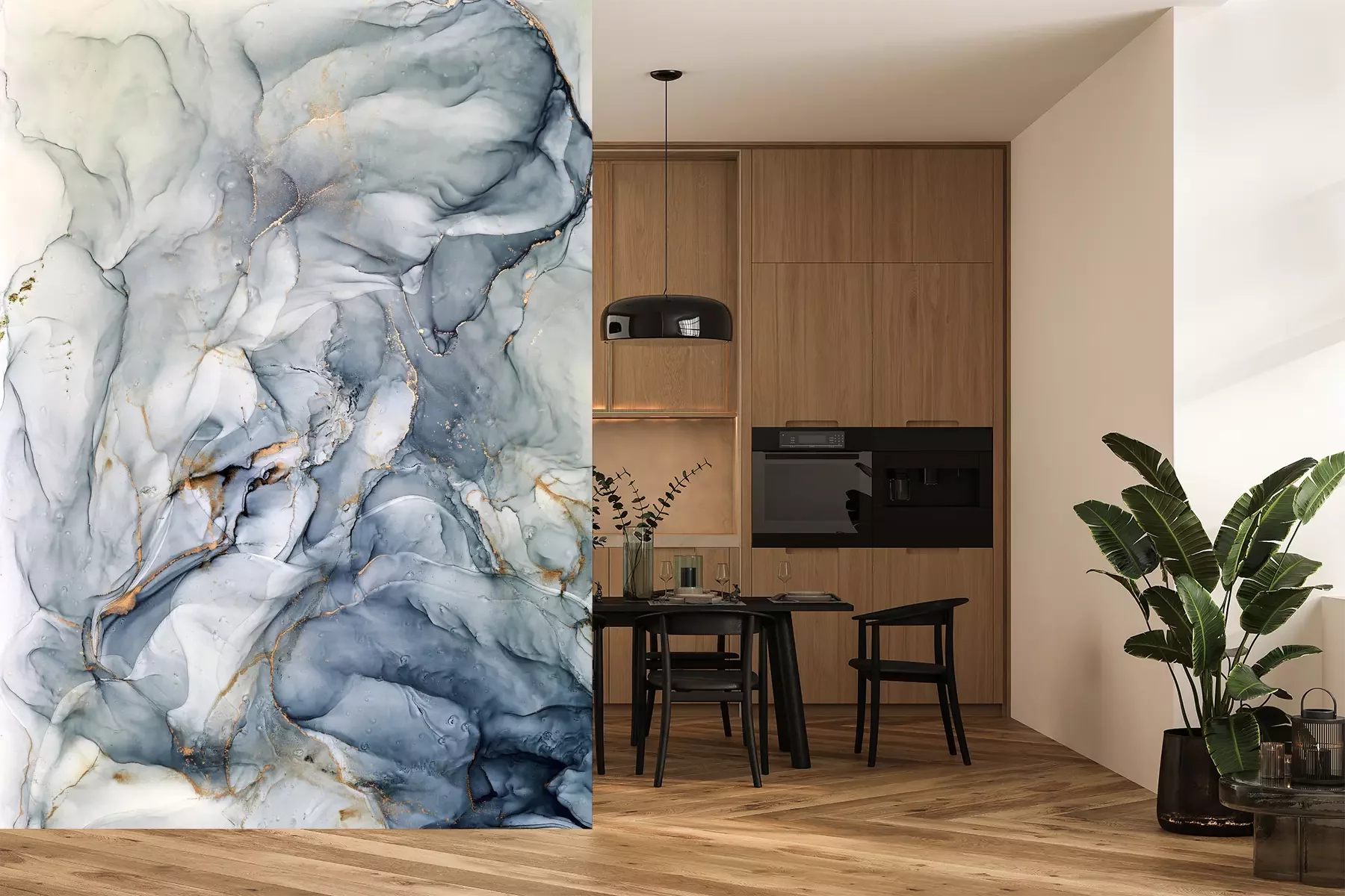Das Material Premium+ besteht aus einer strukturierten Vinyl-Oberschicht und einem Trägermaterial (Vlies) mit einer Grammatur von 255 g/m², das kleine Unebenheiten der Wand zuverlässig kaschiert. Die feine Sandstruktur verleiht der Oberfläche eine luxuriöse Haptik, während das halbmatte Finish die Tiefe der Farben betont. Das Material ist dampfdurchlässig – so kann diese Fototapete auch in Küchen und Badezimmern eingesetzt werden. Die maximale Breite einer Tapetenbahn beträgt 100 cm. Bei größeren Abmessungen besteht die Fototapete aus mehreren gleich großen Bahnen. Der Kleber wird direkt auf die Wand aufgetragen, und die Fototapete wird auf Stoß angebracht, was für einen ästhetischen Effekt ohne sichtbare Fugen sorgt. Die Oberfläche ist pflegeleicht und kann bei Bedarf sanft mit einem feuchten Tuch abgewischt werden.