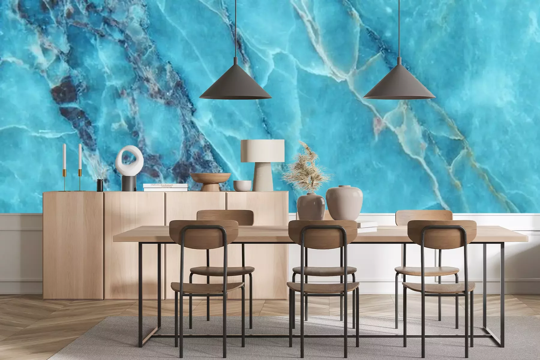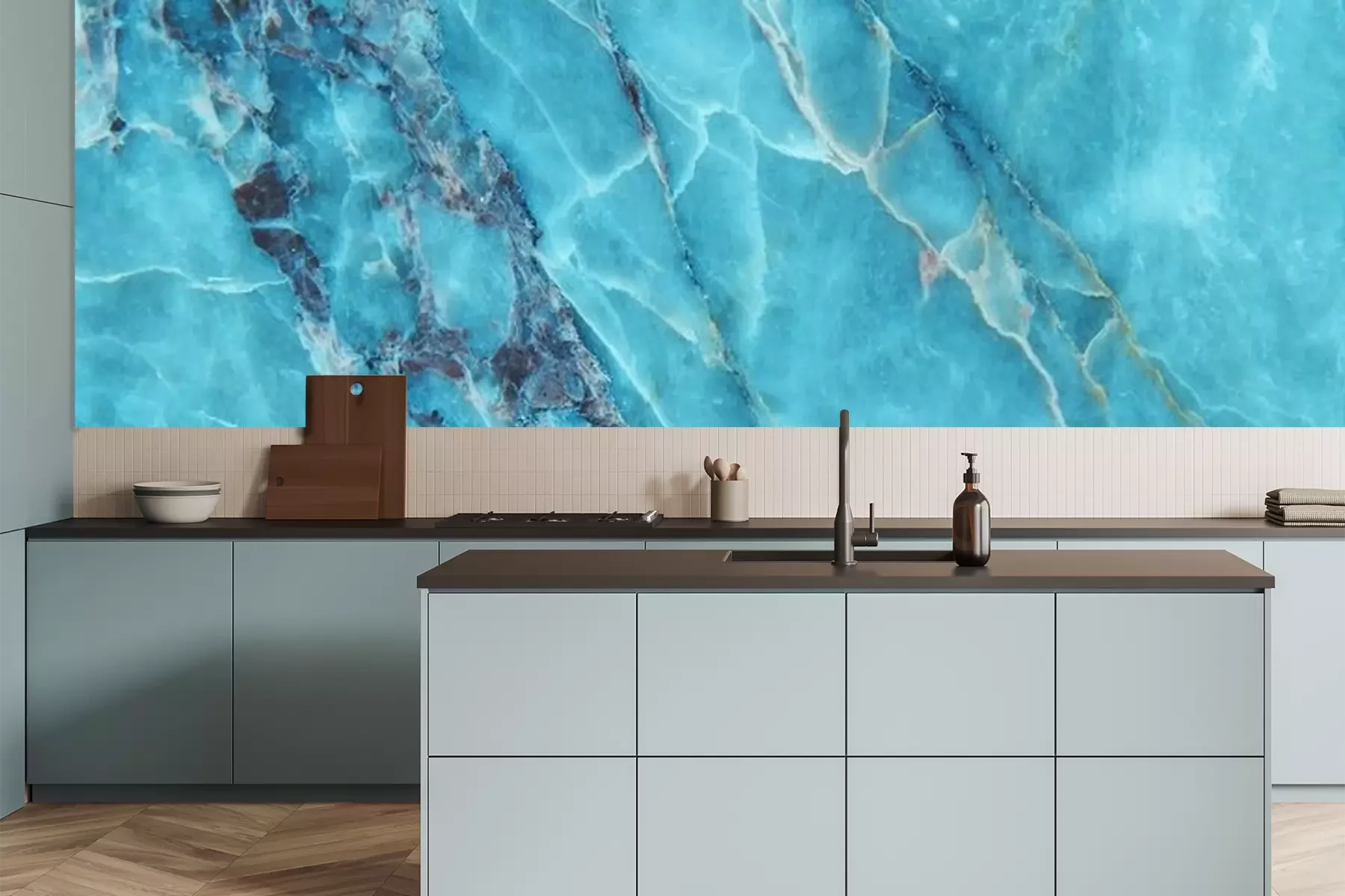 Fototapete Blauer Marmor wie Glasscherben