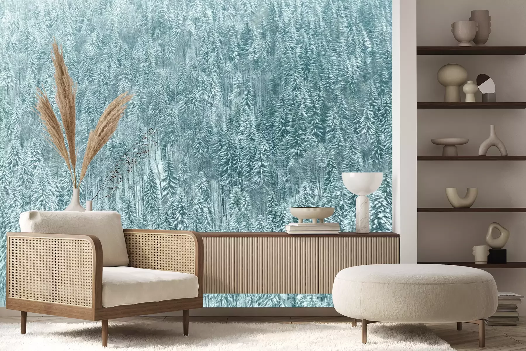 Das Material Premium+ besteht aus einer strukturierten Vinyl-Oberschicht und einem Trägermaterial (Vlies) mit einer Grammatur von 255 g/m², das kleine Unebenheiten der Wand zuverlässig kaschiert. Die feine Sandstruktur verleiht der Oberfläche eine luxuriöse Haptik, während das halbmatte Finish die Tiefe der Farben betont. Das Material ist dampfdurchlässig – so kann diese Fototapete auch in Küchen und Badezimmern eingesetzt werden. Die maximale Breite einer Tapetenbahn beträgt 100 cm. Bei größeren Abmessungen besteht die Fototapete aus mehreren gleich großen Bahnen. Der Kleber wird direkt auf die Wand aufgetragen, und die Fototapete wird auf Stoß angebracht, was für einen ästhetischen Effekt ohne sichtbare Fugen sorgt. Die Oberfläche ist pflegeleicht und kann bei Bedarf sanft mit einem feuchten Tuch abgewischt werden.