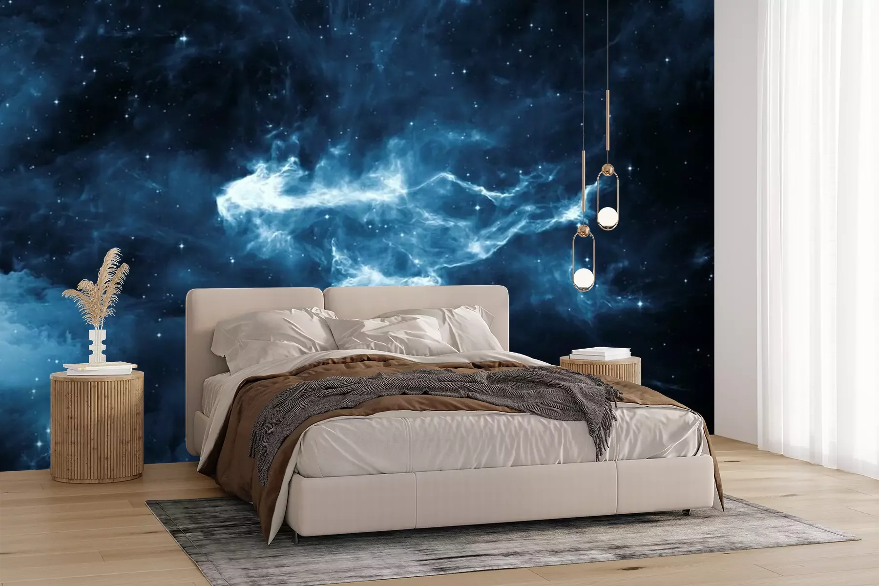 Das Material Premium+ besteht aus einer strukturierten Vinyl-Oberschicht und einem Trägermaterial (Vlies) mit einer Grammatur von 255 g/m², das kleine Unebenheiten der Wand zuverlässig kaschiert. Die feine Sandstruktur verleiht der Oberfläche eine luxuriöse Haptik, während das halbmatte Finish die Tiefe der Farben betont. Das Material ist dampfdurchlässig – so kann diese Fototapete auch in Küchen und Badezimmern eingesetzt werden. Die maximale Breite einer Tapetenbahn beträgt 100 cm. Bei größeren Abmessungen besteht die Fototapete aus mehreren gleich großen Bahnen. Der Kleber wird direkt auf die Wand aufgetragen, und die Fototapete wird auf Stoß angebracht, was für einen ästhetischen Effekt ohne sichtbare Fugen sorgt. Die Oberfläche ist pflegeleicht und kann bei Bedarf sanft mit einem feuchten Tuch abgewischt werden.