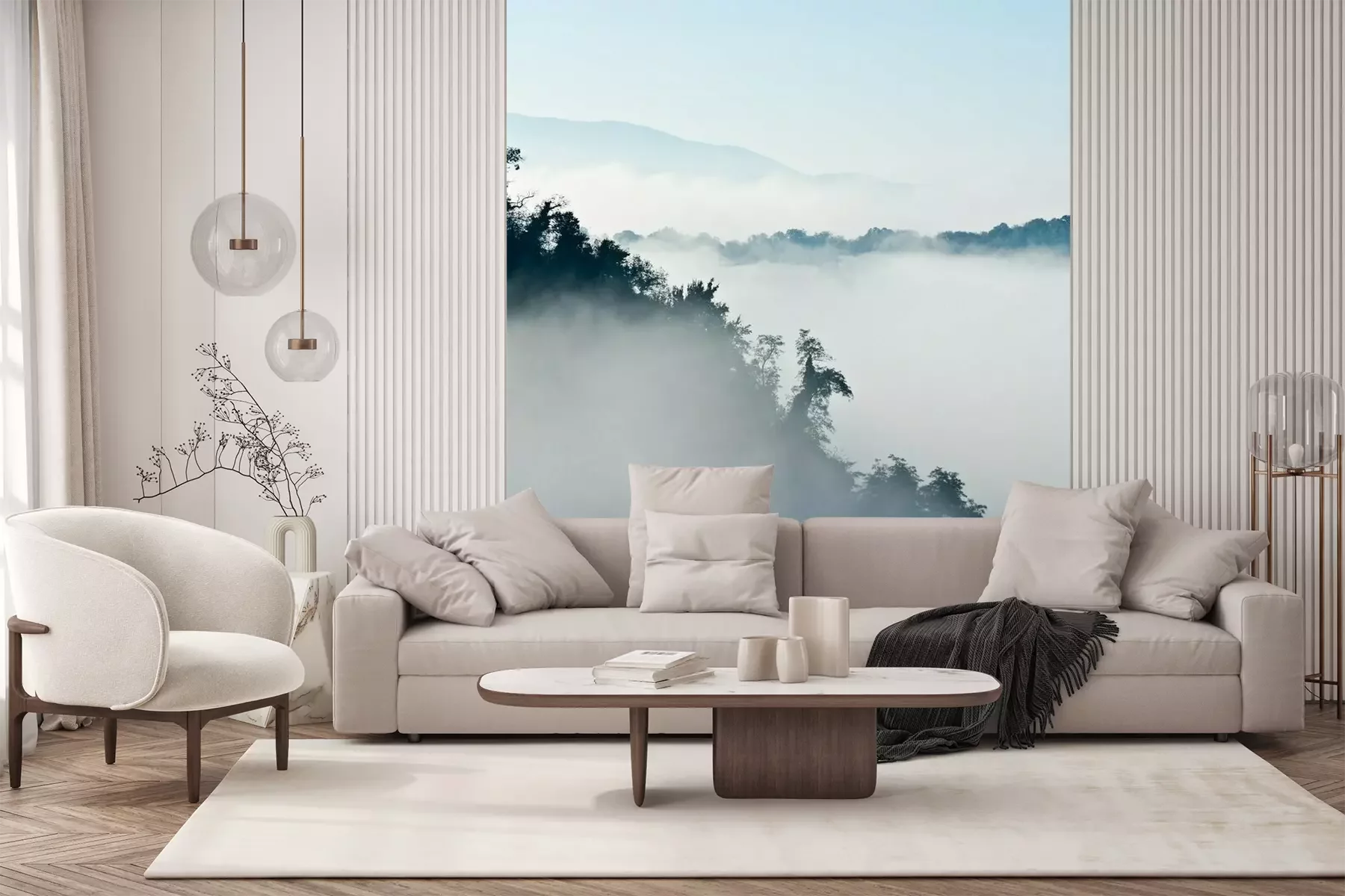 Das Material Premium+ besteht aus einer strukturierten Vinyl-Oberschicht und einem Trägermaterial (Vlies) mit einer Grammatur von 255 g/m², das kleine Unebenheiten der Wand zuverlässig kaschiert. Die feine Sandstruktur verleiht der Oberfläche eine luxuriöse Haptik, während das halbmatte Finish die Tiefe der Farben betont. Das Material ist dampfdurchlässig – so kann diese Fototapete auch in Küchen und Badezimmern eingesetzt werden. Die maximale Breite einer Tapetenbahn beträgt 100 cm. Bei größeren Abmessungen besteht die Fototapete aus mehreren gleich großen Bahnen. Der Kleber wird direkt auf die Wand aufgetragen, und die Fototapete wird auf Stoß angebracht, was für einen ästhetischen Effekt ohne sichtbare Fugen sorgt. Die Oberfläche ist pflegeleicht und kann bei Bedarf sanft mit einem feuchten Tuch abgewischt werden.