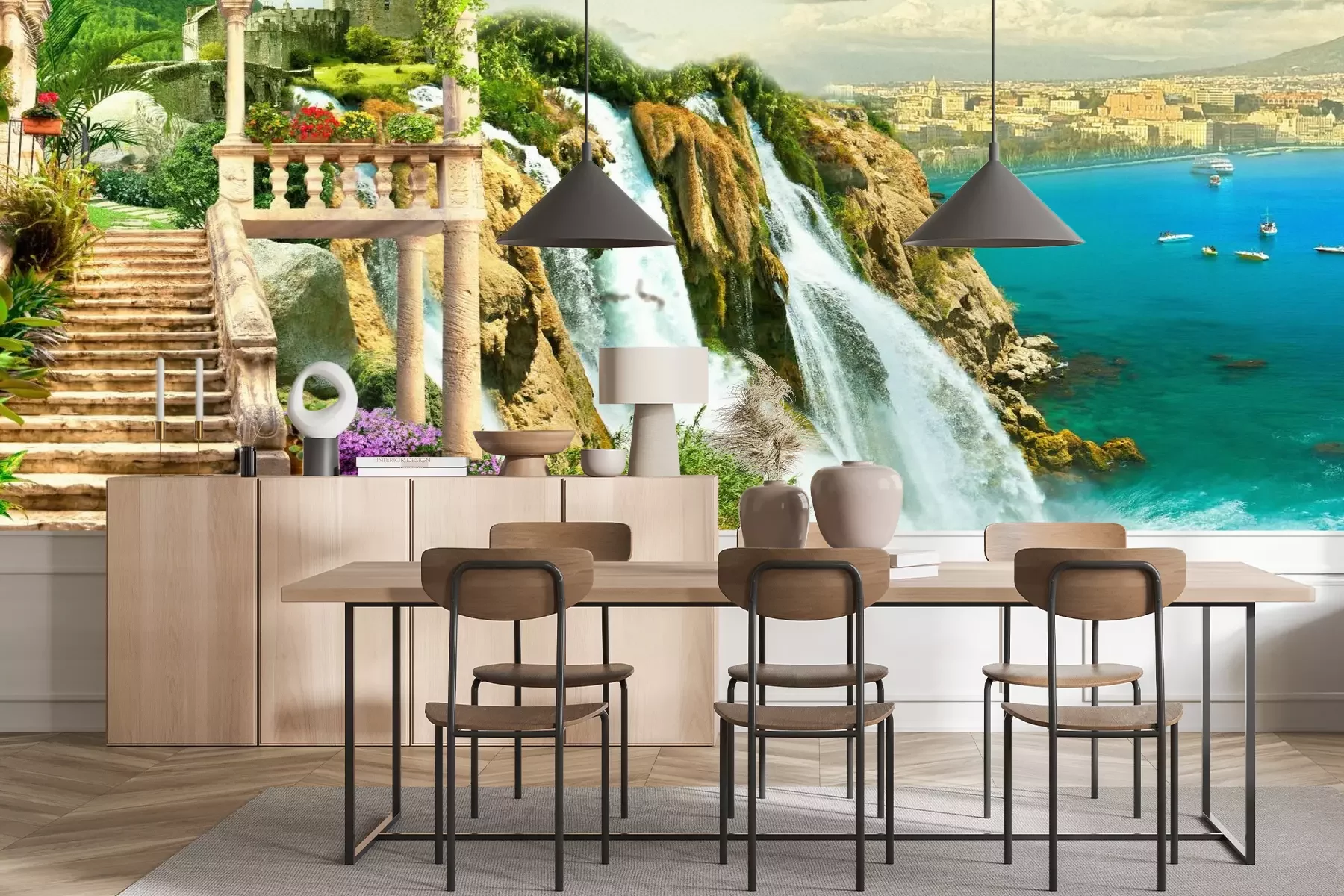 Die Fototapeten werden in Bahnen geliefert. Die Größe und die Anzahl der Bahnen, aus denen die gesamte Fototapete besteht, hängen vom gewählten Material ab. Wenn die Größe die maximale Breite des Materials überschreitet, besteht der Ausdruck aus mehreren gleich großen Bahnen.