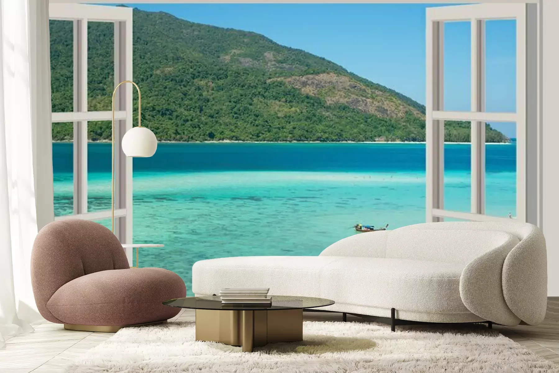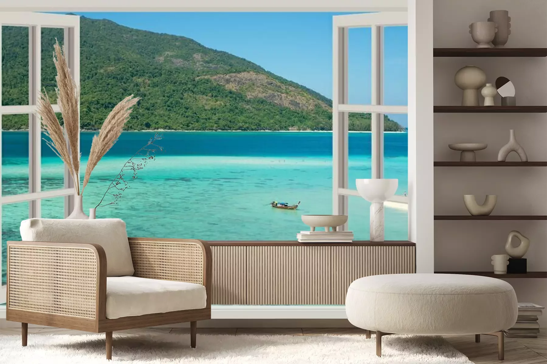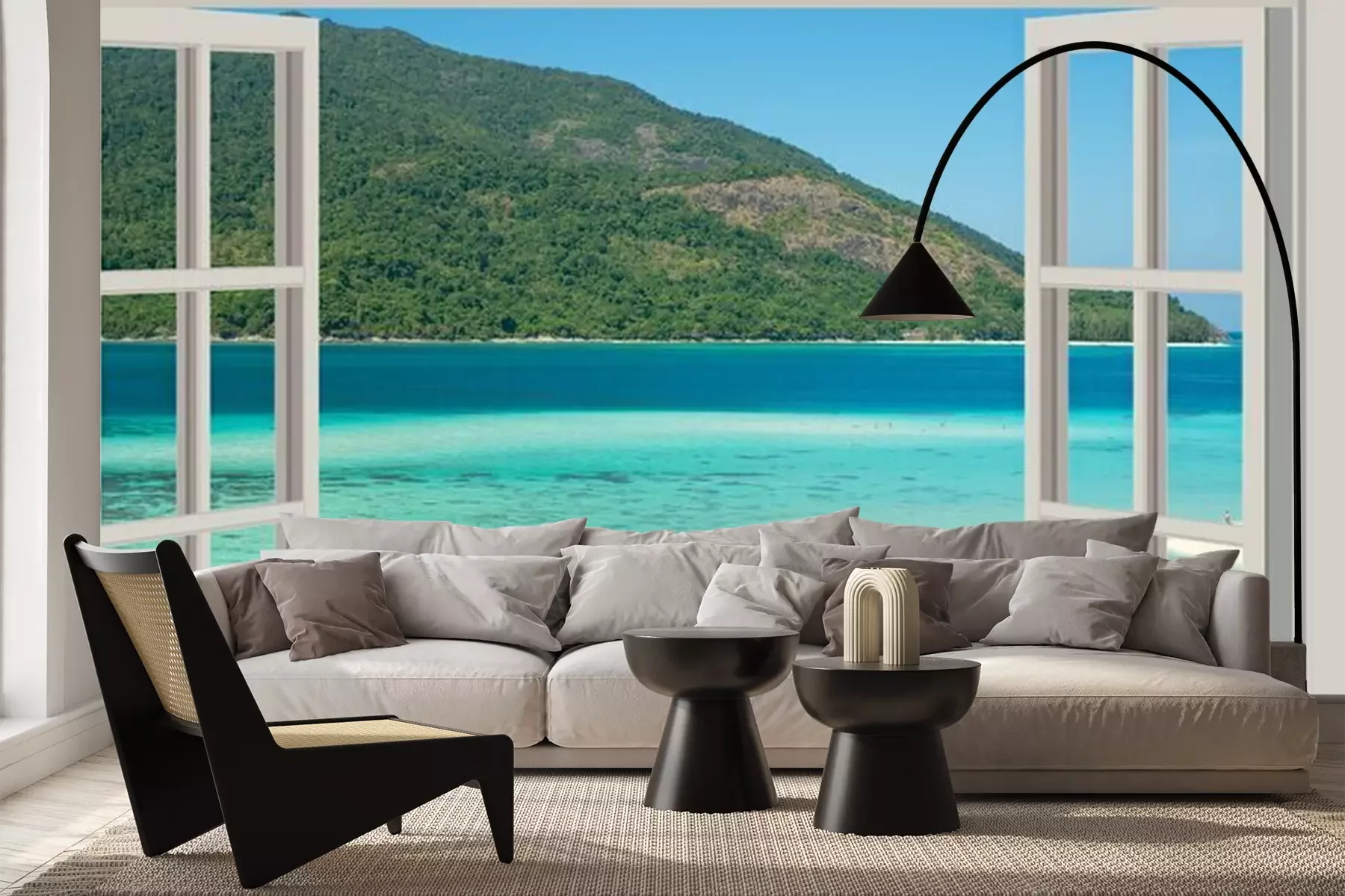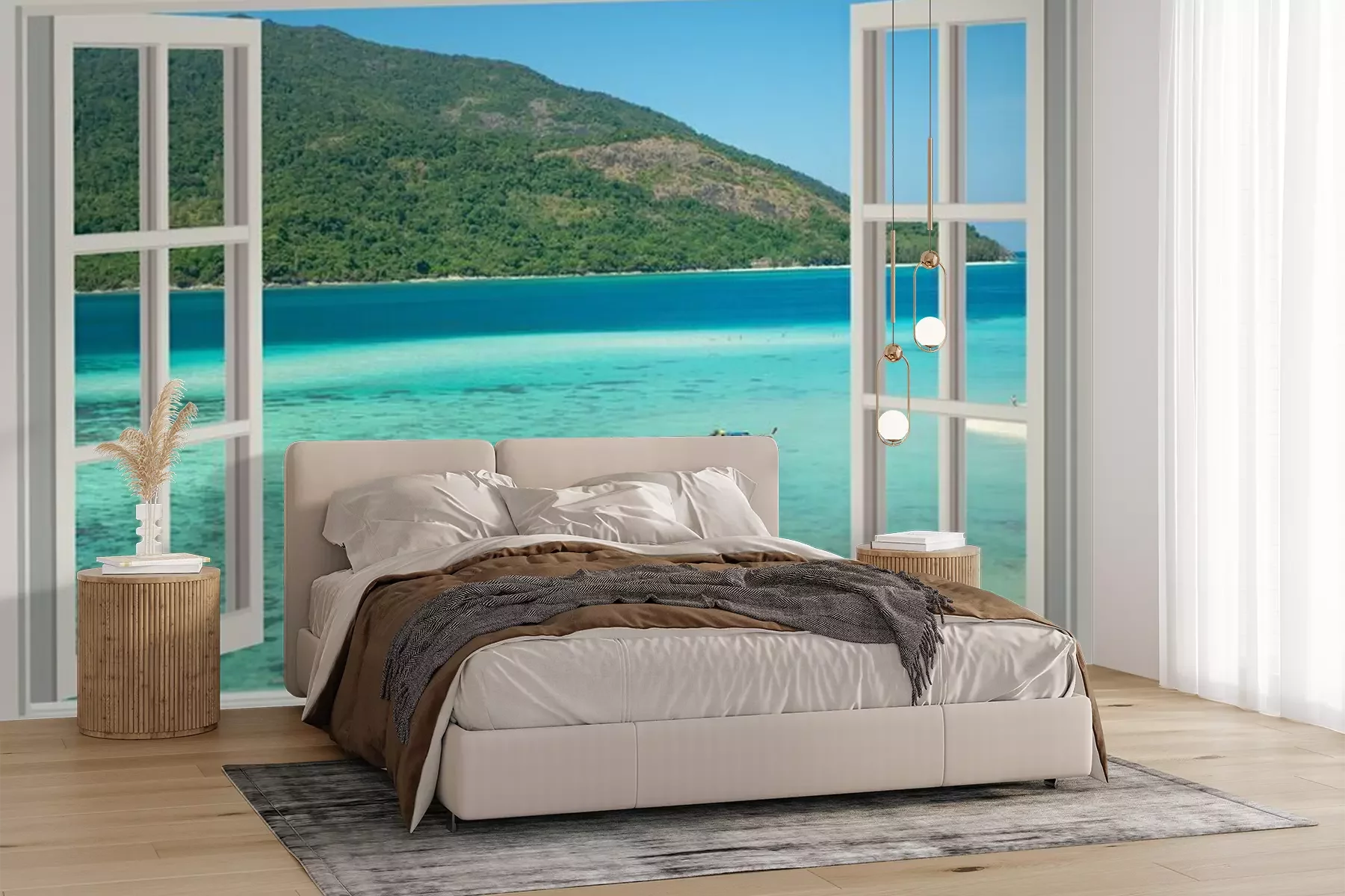 Fototapete Blick aus dem Fenster auf tropisches Meer