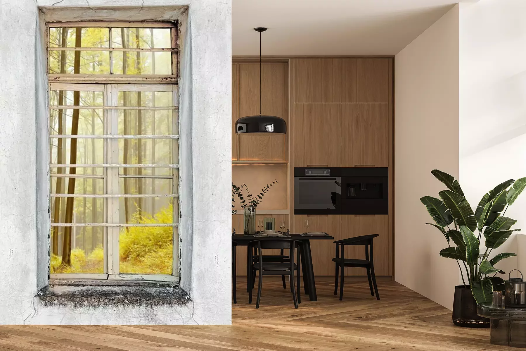 Das Material Premium+ besteht aus einer strukturierten Vinyl-Oberschicht und einem Trägermaterial (Vlies) mit einer Grammatur von 255 g/m², das kleine Unebenheiten der Wand zuverlässig kaschiert. Die feine Sandstruktur verleiht der Oberfläche eine luxuriöse Haptik, während das halbmatte Finish die Tiefe der Farben betont. Das Material ist dampfdurchlässig – so kann diese Fototapete auch in Küchen und Badezimmern eingesetzt werden. Die maximale Breite einer Tapetenbahn beträgt 100 cm. Bei größeren Abmessungen besteht die Fototapete aus mehreren gleich großen Bahnen. Der Kleber wird direkt auf die Wand aufgetragen, und die Fototapete wird auf Stoß angebracht, was für einen ästhetischen Effekt ohne sichtbare Fugen sorgt. Die Oberfläche ist pflegeleicht und kann bei Bedarf sanft mit einem feuchten Tuch abgewischt werden.