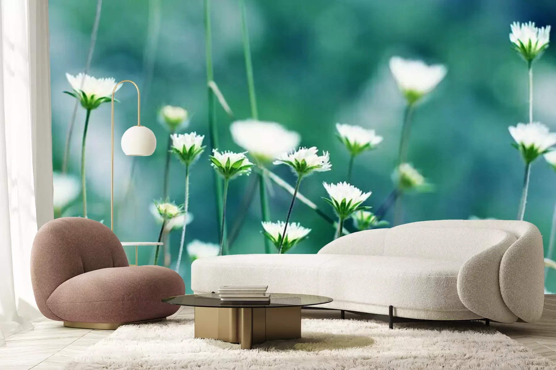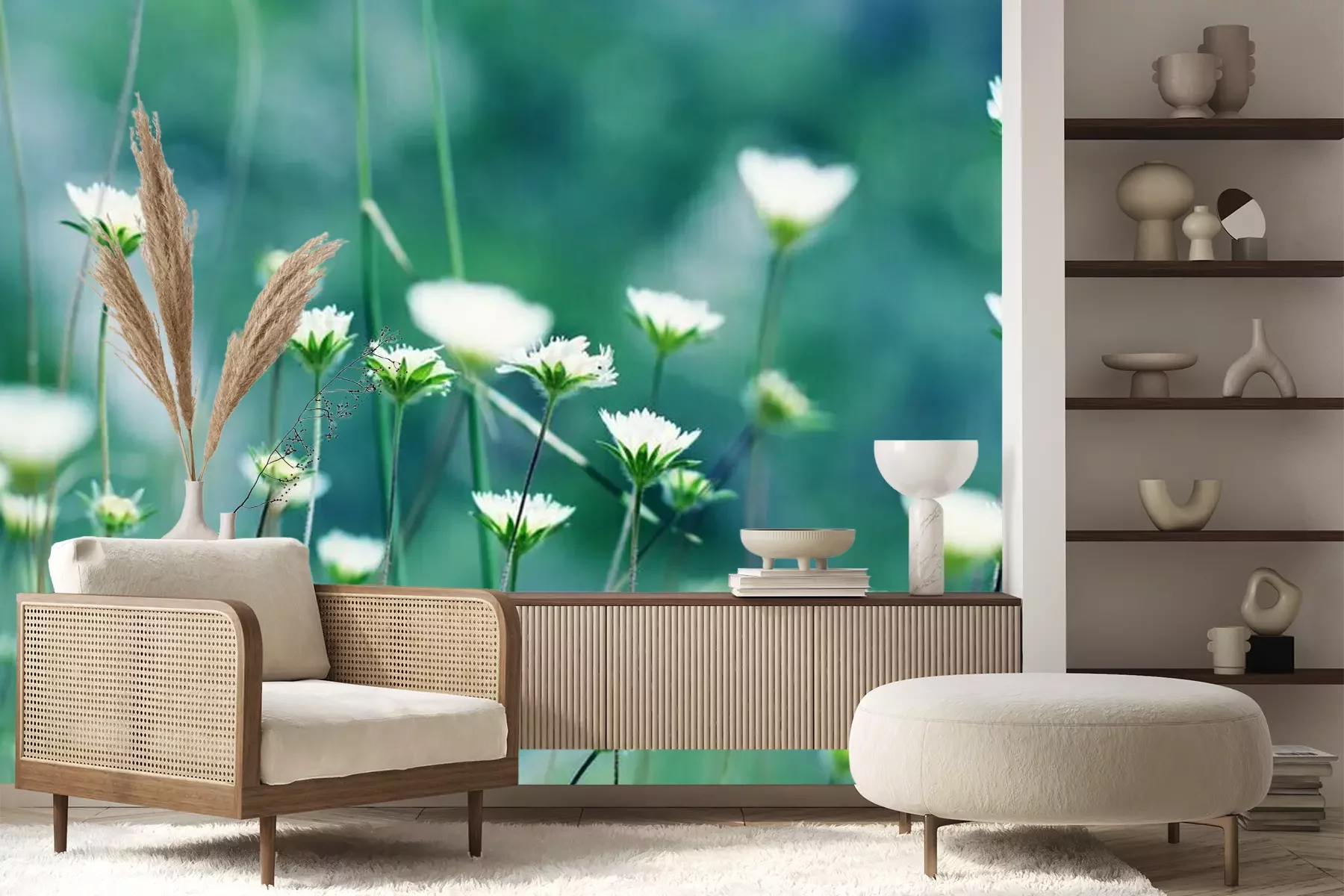 Fototapete Blühende Blumen auf der Wiese
