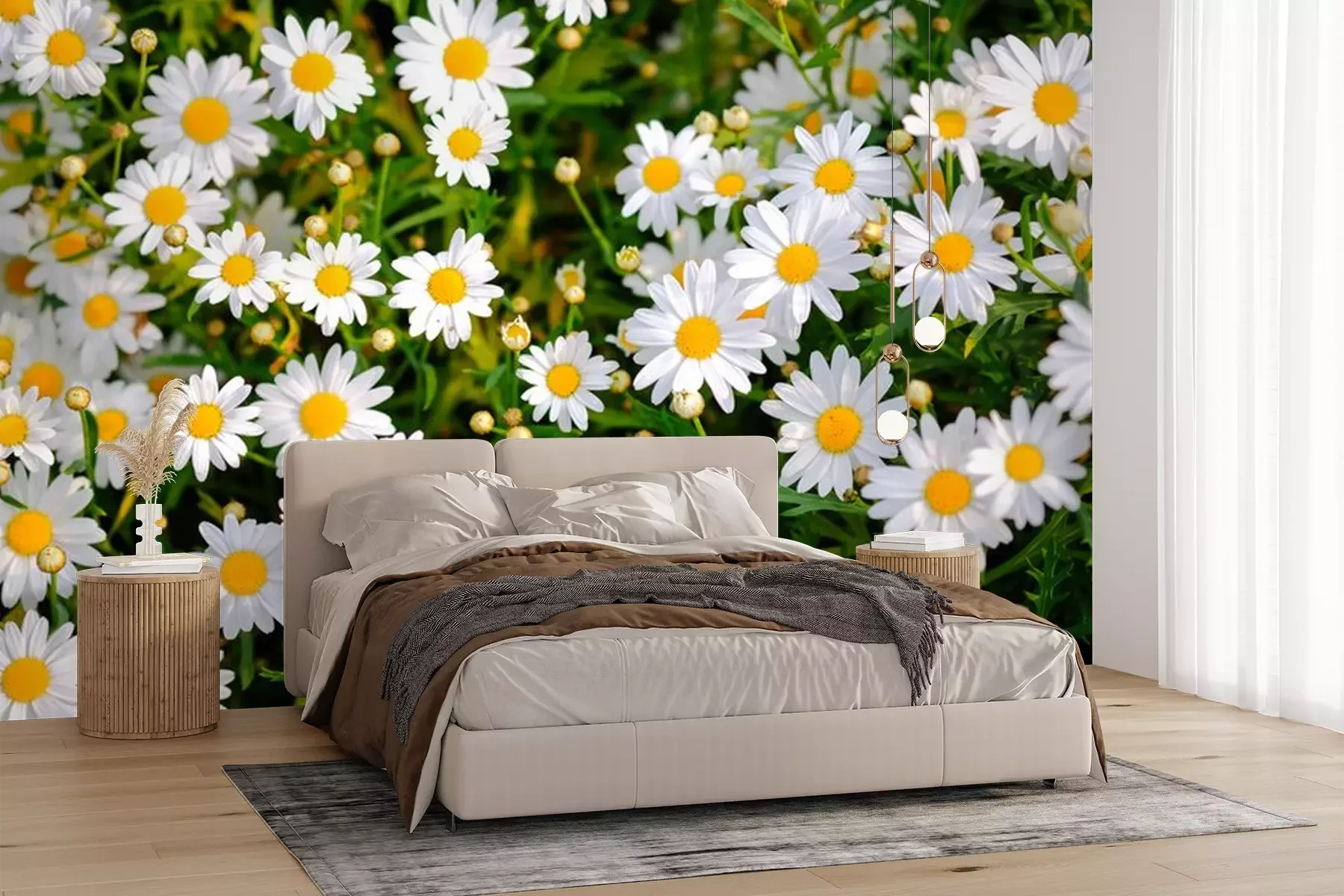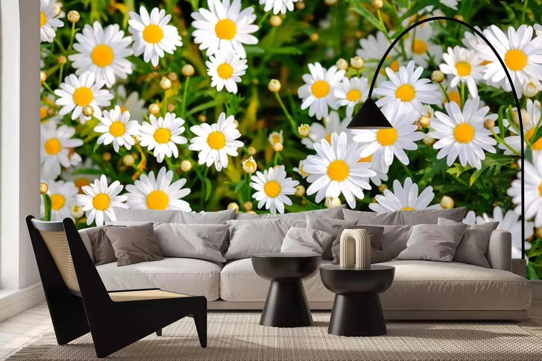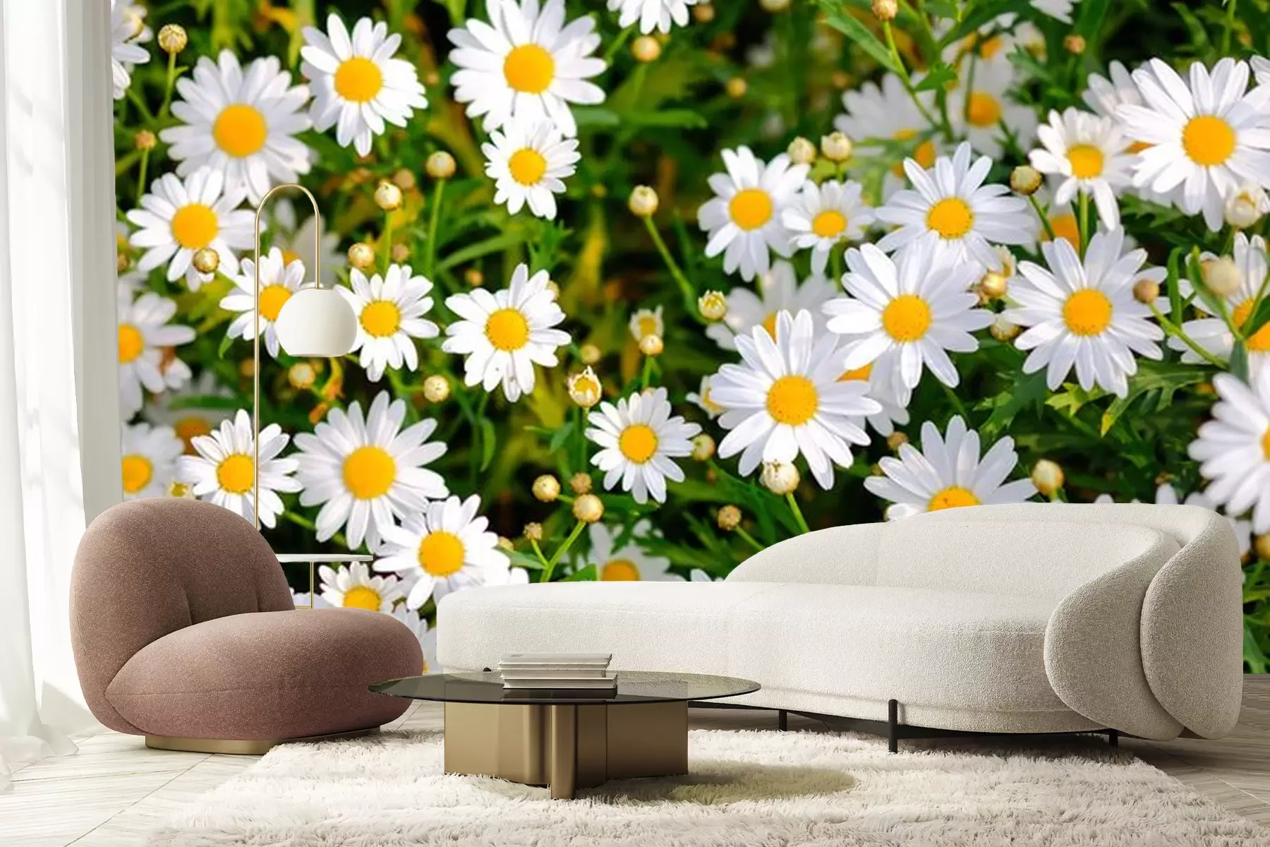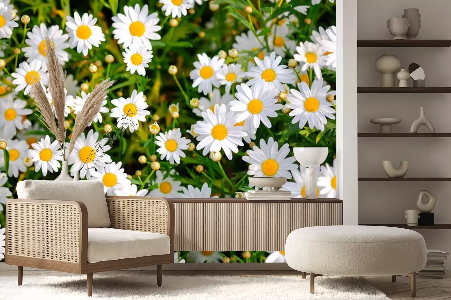 Fototapete Blühende Gänseblümchen auf der Wiese