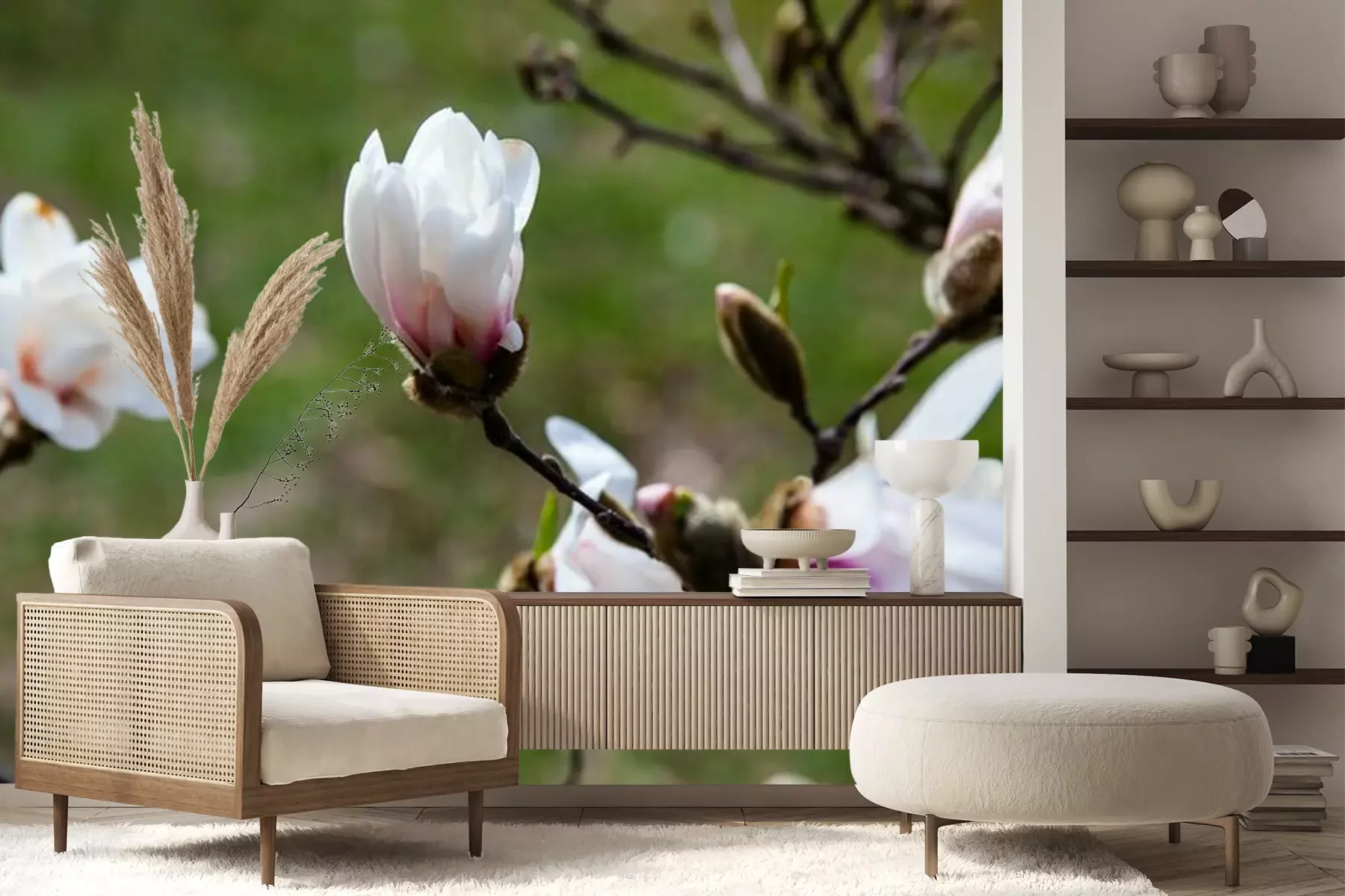 Das Material Premium+ besteht aus einer strukturierten Vinyl-Oberschicht und einem Trägermaterial (Vlies) mit einer Grammatur von 255 g/m², das kleine Unebenheiten der Wand zuverlässig kaschiert. Die feine Sandstruktur verleiht der Oberfläche eine luxuriöse Haptik, während das halbmatte Finish die Tiefe der Farben betont. Das Material ist dampfdurchlässig – so kann diese Fototapete auch in Küchen und Badezimmern eingesetzt werden. Die maximale Breite einer Tapetenbahn beträgt 100 cm. Bei größeren Abmessungen besteht die Fototapete aus mehreren gleich großen Bahnen. Der Kleber wird direkt auf die Wand aufgetragen, und die Fototapete wird auf Stoß angebracht, was für einen ästhetischen Effekt ohne sichtbare Fugen sorgt. Die Oberfläche ist pflegeleicht und kann bei Bedarf sanft mit einem feuchten Tuch abgewischt werden.