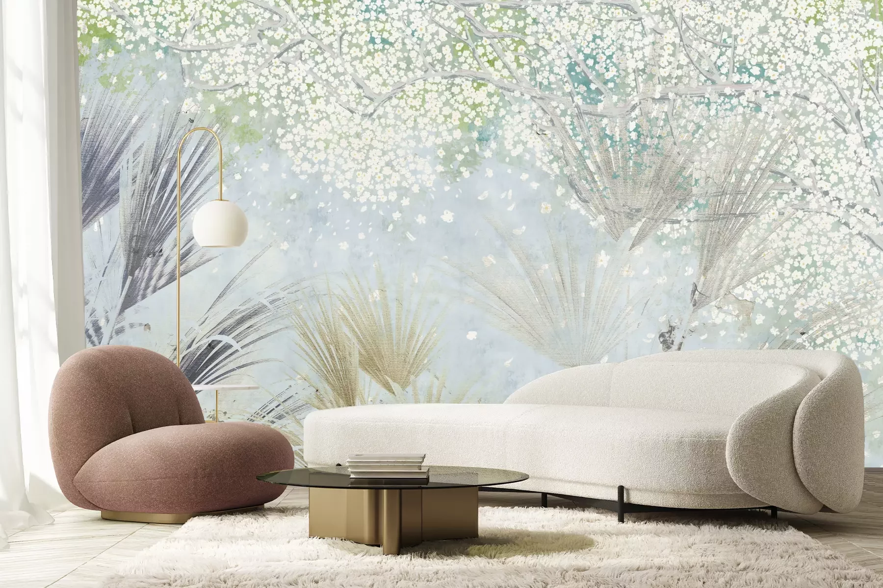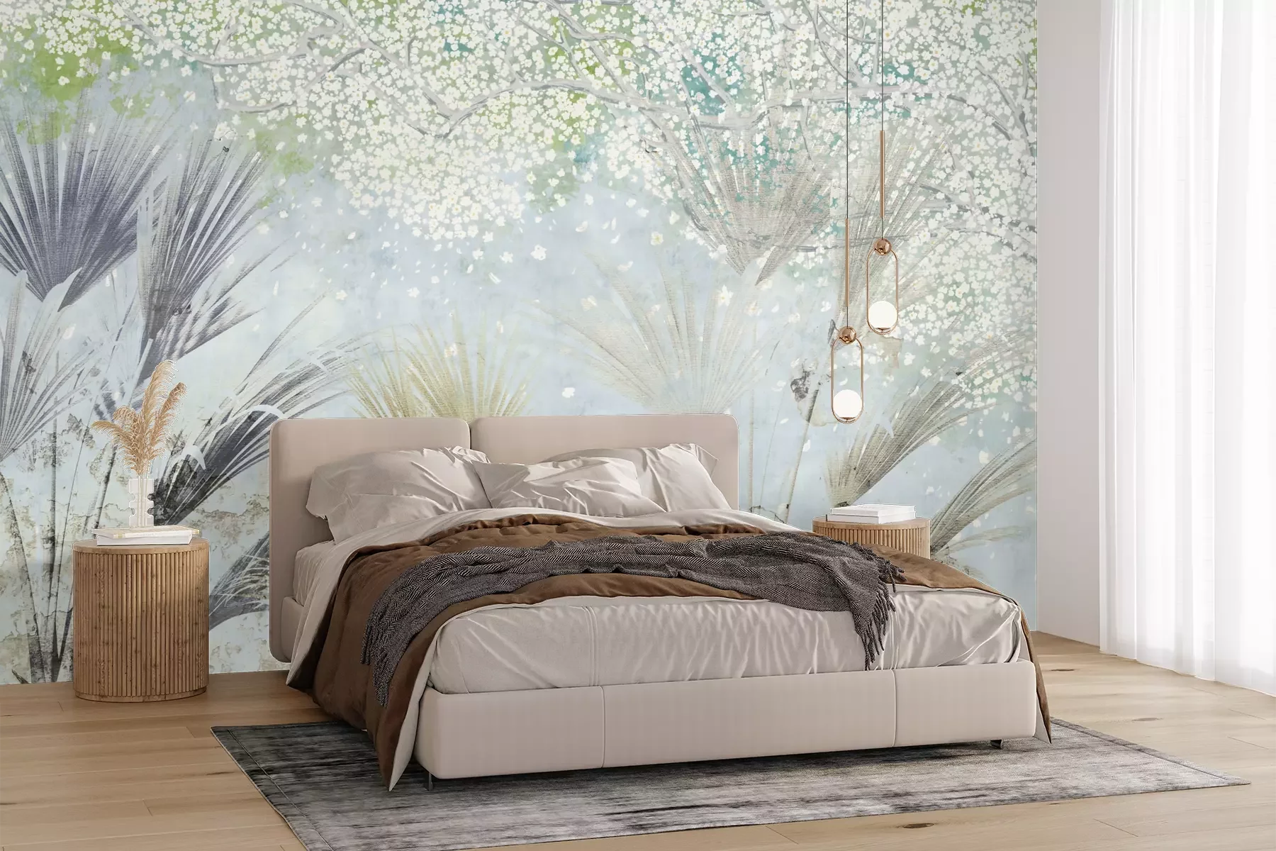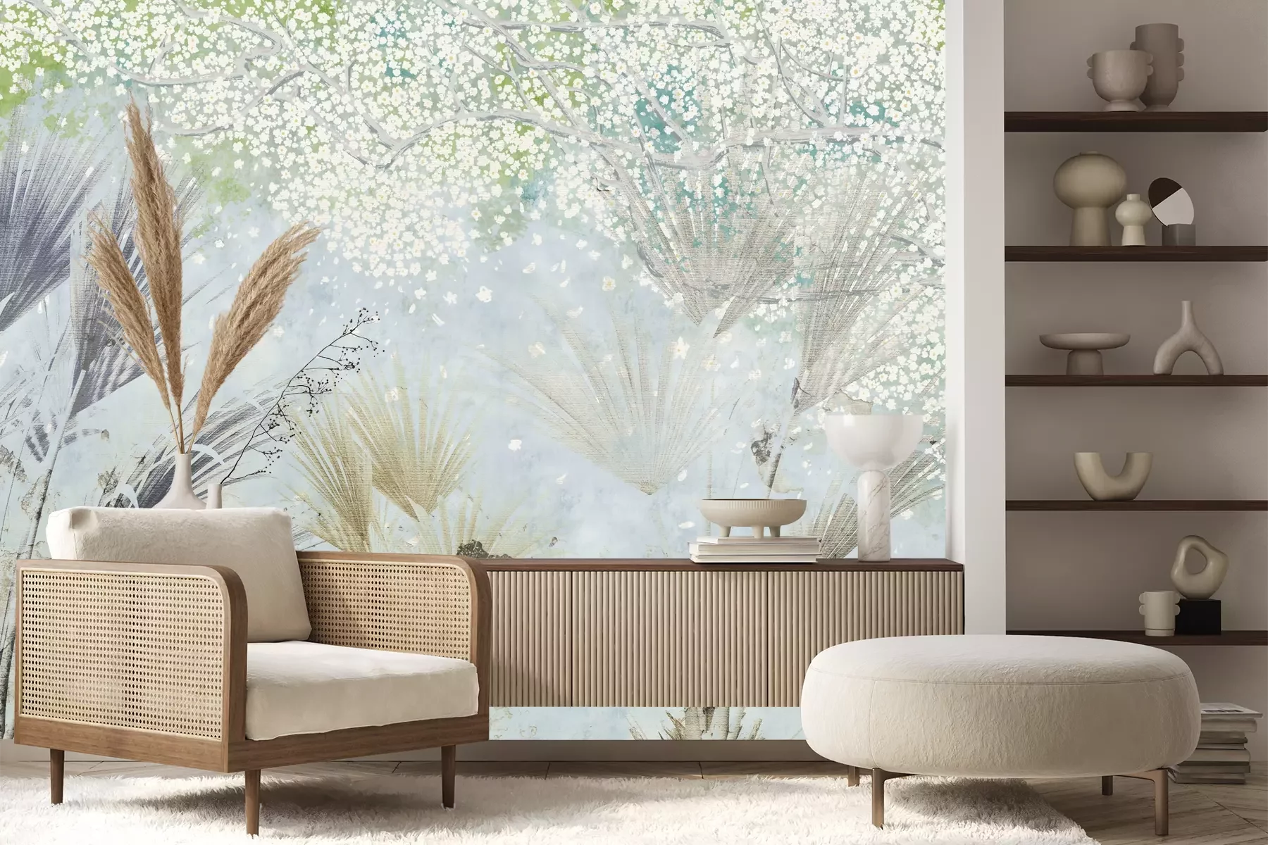 Das Material Premium+ besteht aus einer strukturierten Vinyl-Oberschicht und einem Trägermaterial (Vlies) mit einer Grammatur von 255 g/m², das kleine Unebenheiten der Wand zuverlässig kaschiert. Die feine Sandstruktur verleiht der Oberfläche eine luxuriöse Haptik, während das halbmatte Finish die Tiefe der Farben betont. Das Material ist dampfdurchlässig – so kann diese Fototapete auch in Küchen und Badezimmern eingesetzt werden. Die maximale Breite einer Tapetenbahn beträgt 100 cm. Bei größeren Abmessungen besteht die Fototapete aus mehreren gleich großen Bahnen. Der Kleber wird direkt auf die Wand aufgetragen, und die Fototapete wird auf Stoß angebracht, was für einen ästhetischen Effekt ohne sichtbare Fugen sorgt. Die Oberfläche ist pflegeleicht und kann bei Bedarf sanft mit einem feuchten Tuch abgewischt werden.