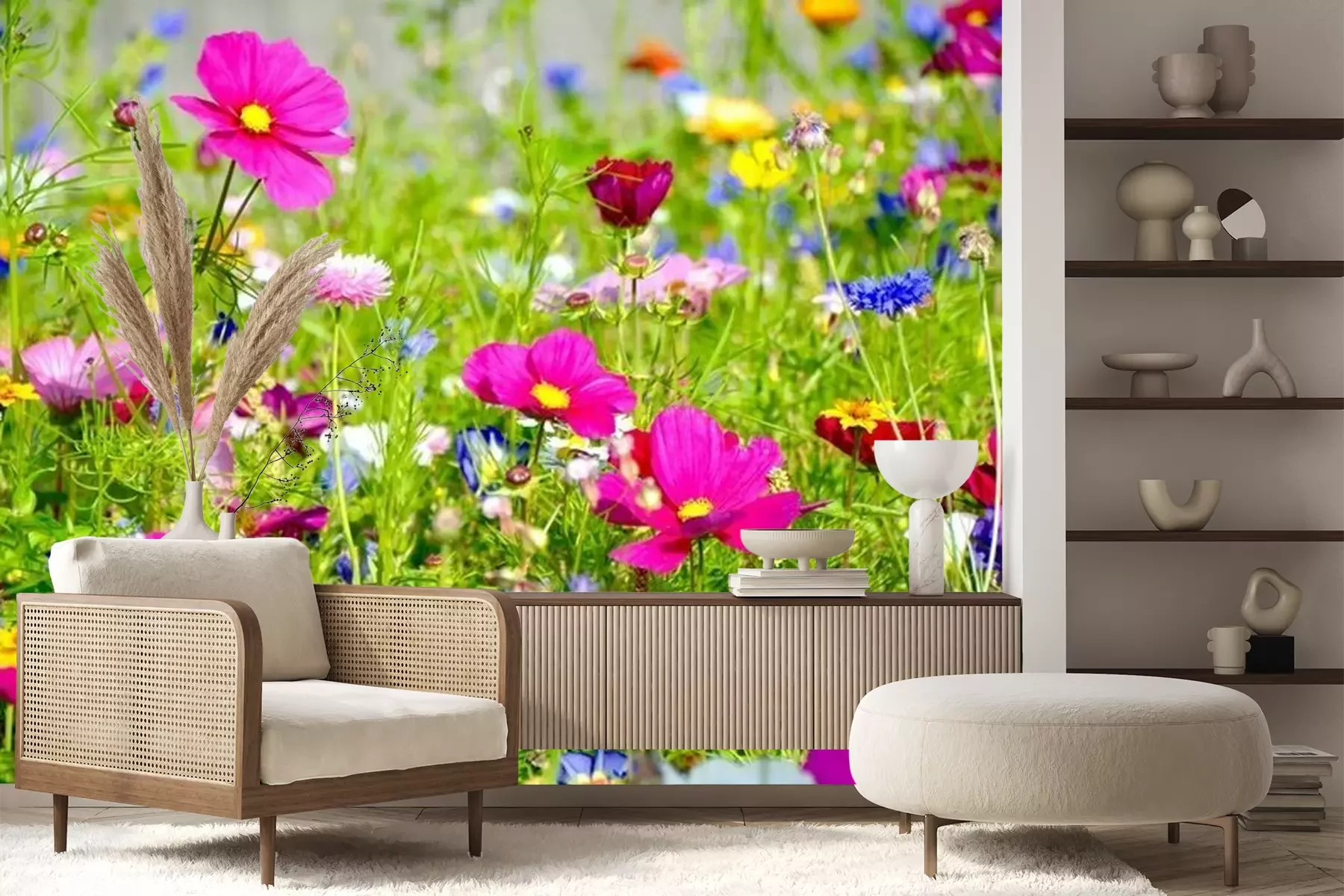 Grußkarte - bunte Blumenwiese - SommerblumenFototapete