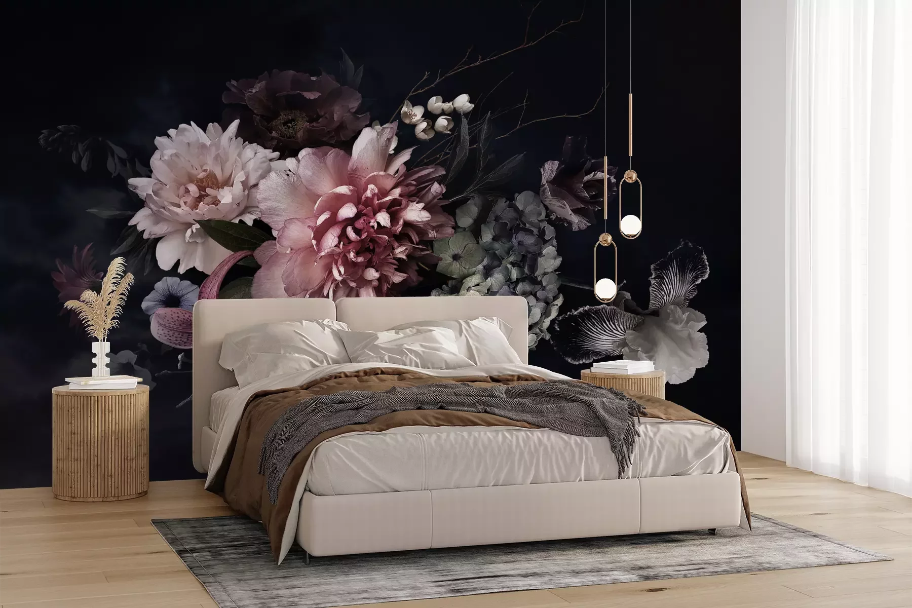 Das Material Premium+ besteht aus einer strukturierten Vinyl-Oberschicht und einem Trägermaterial (Vlies) mit einer Grammatur von 255 g/m², das kleine Unebenheiten der Wand zuverlässig kaschiert. Die feine Sandstruktur verleiht der Oberfläche eine luxuriöse Haptik, während das halbmatte Finish die Tiefe der Farben betont. Das Material ist dampfdurchlässig – so kann diese Fototapete auch in Küchen und Badezimmern eingesetzt werden. Die maximale Breite einer Tapetenbahn beträgt 100 cm. Bei größeren Abmessungen besteht die Fototapete aus mehreren gleich großen Bahnen. Der Kleber wird direkt auf die Wand aufgetragen, und die Fototapete wird auf Stoß angebracht, was für einen ästhetischen Effekt ohne sichtbare Fugen sorgt. Die Oberfläche ist pflegeleicht und kann bei Bedarf sanft mit einem feuchten Tuch abgewischt werden.