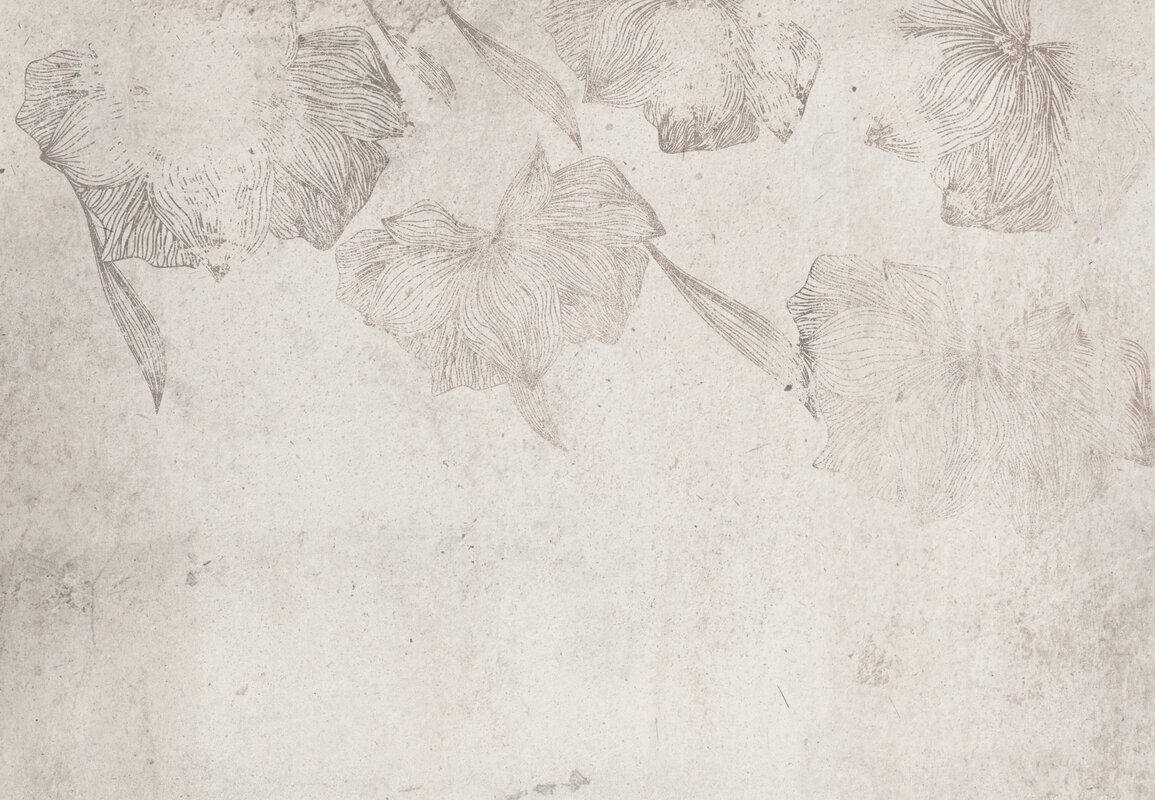 Fototapete: Blumen im Skizzenstil auf konkretem Hintergrund