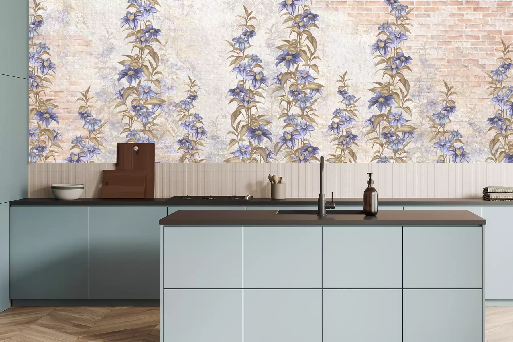 Das Material Premium+ besteht aus einer strukturierten Vinyl-Oberschicht und einem Trägermaterial (Vlies) mit einer Grammatur von 255 g/m², das kleine Unebenheiten der Wand zuverlässig kaschiert. Die feine Sandstruktur verleiht der Oberfläche eine luxuriöse Haptik, während das halbmatte Finish die Tiefe der Farben betont. Das Material ist dampfdurchlässig – so kann diese Fototapete auch in Küchen und Badezimmern eingesetzt werden. Die maximale Breite einer Tapetenbahn beträgt 100 cm. Bei größeren Abmessungen besteht die Fototapete aus mehreren gleich großen Bahnen. Der Kleber wird direkt auf die Wand aufgetragen, und die Fototapete wird auf Stoß angebracht, was für einen ästhetischen Effekt ohne sichtbare Fugen sorgt. Die Oberfläche ist pflegeleicht und kann bei Bedarf sanft mit einem feuchten Tuch abgewischt werden.