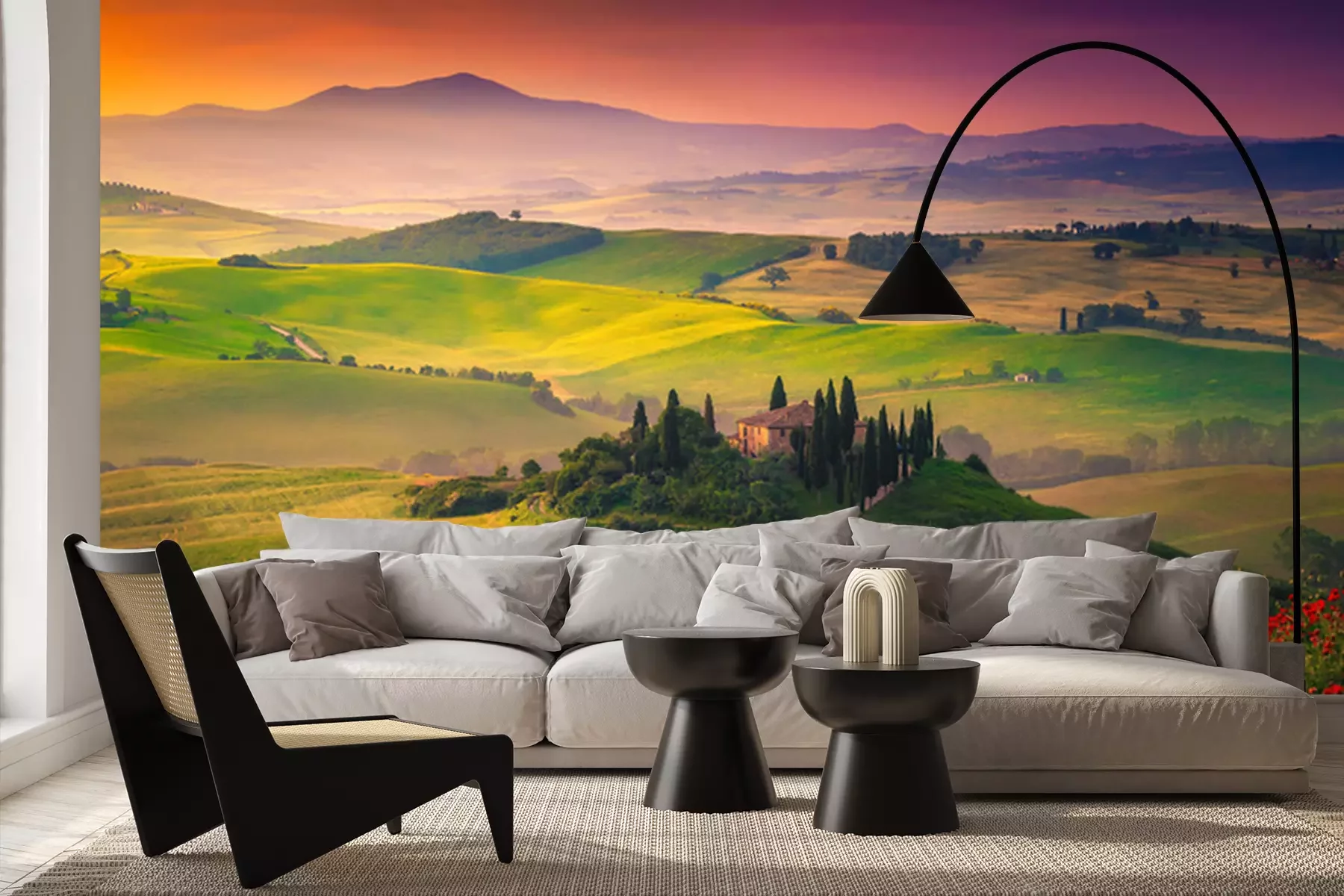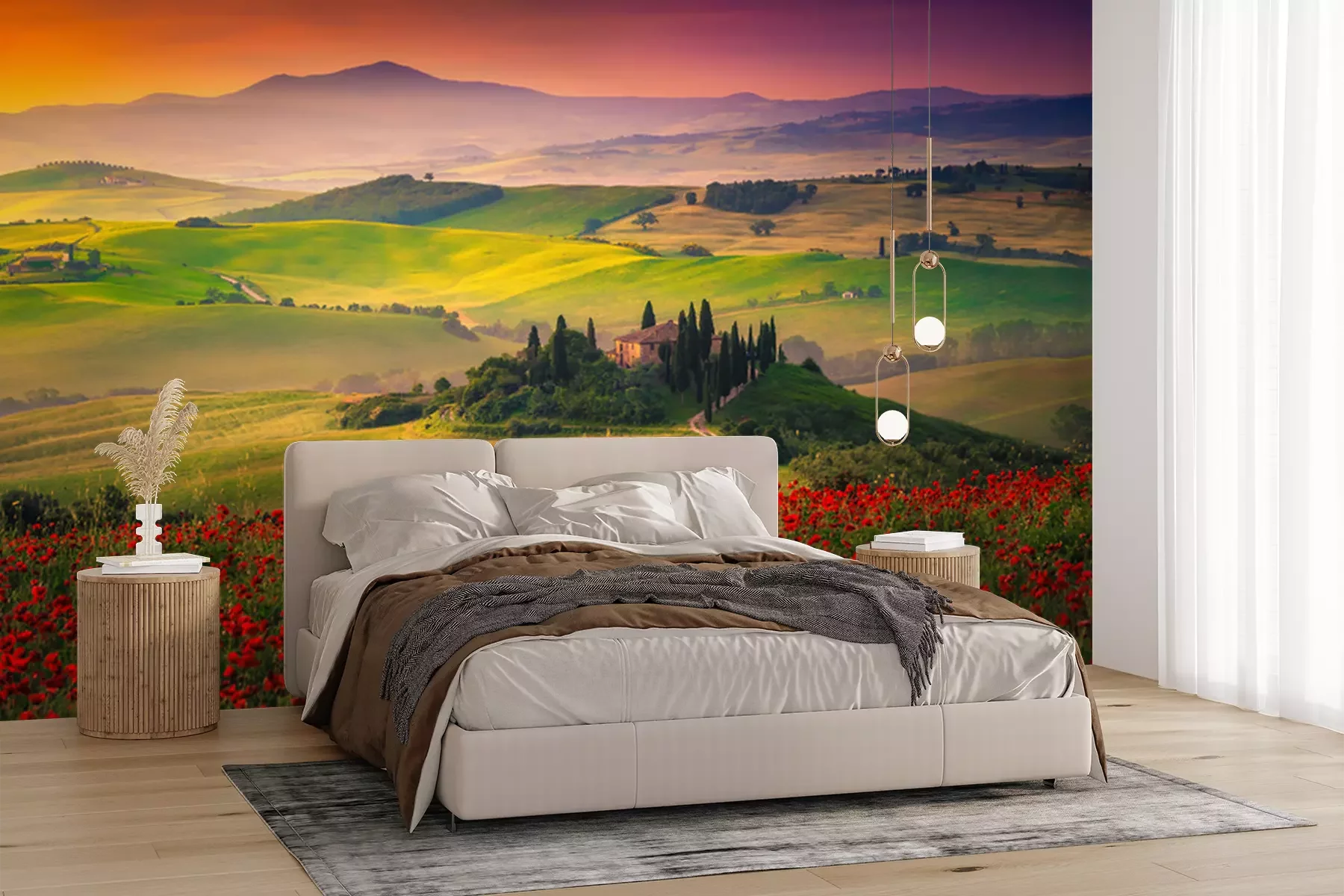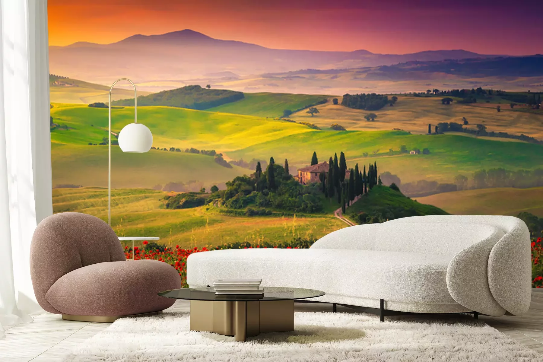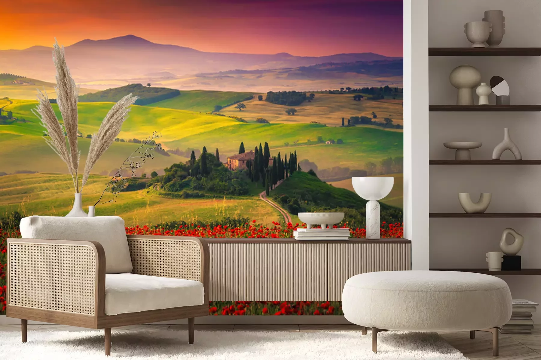 Fototapete Blumen und Felder in der Toskana