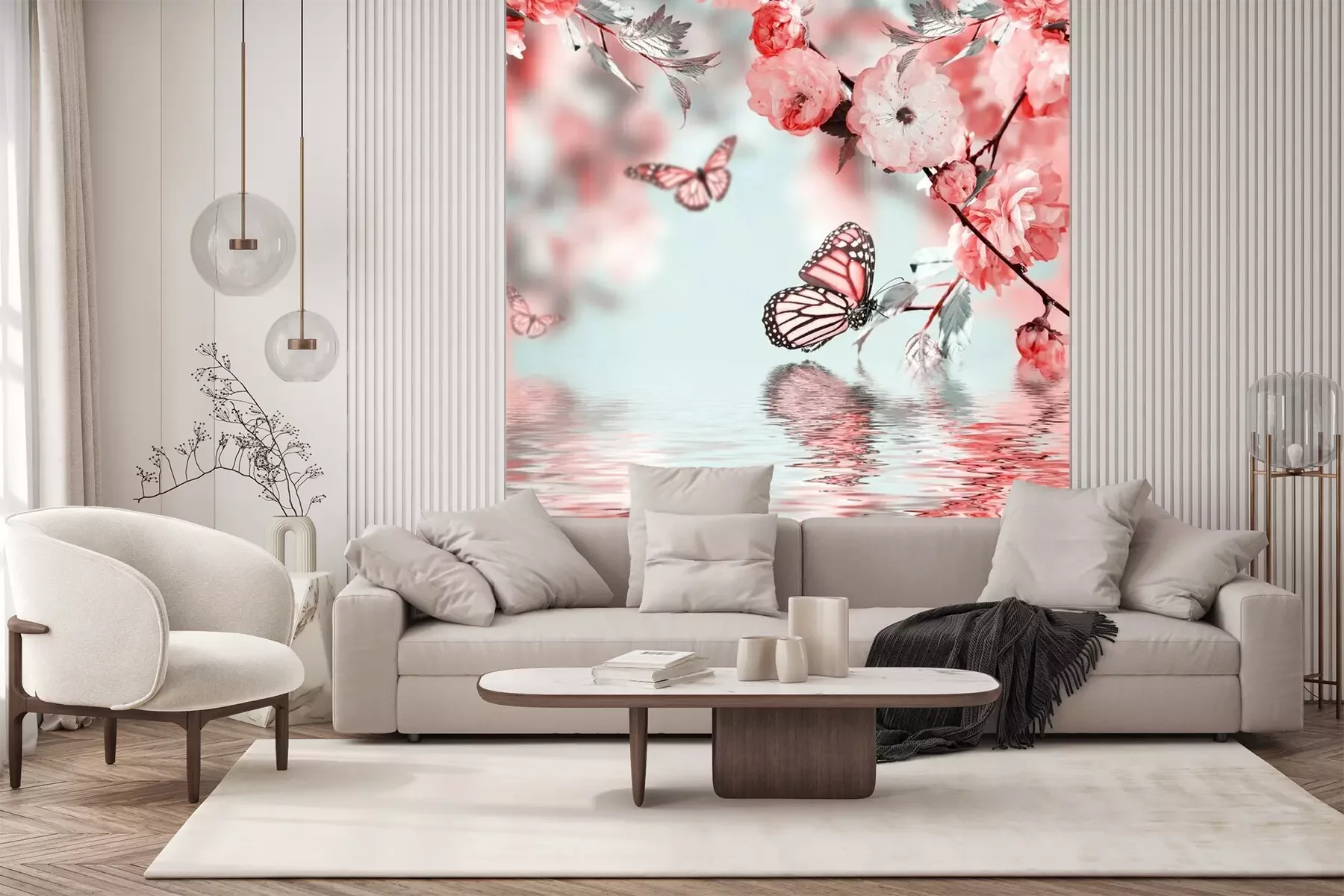 Fototapete Blumen und Schmetterlinge