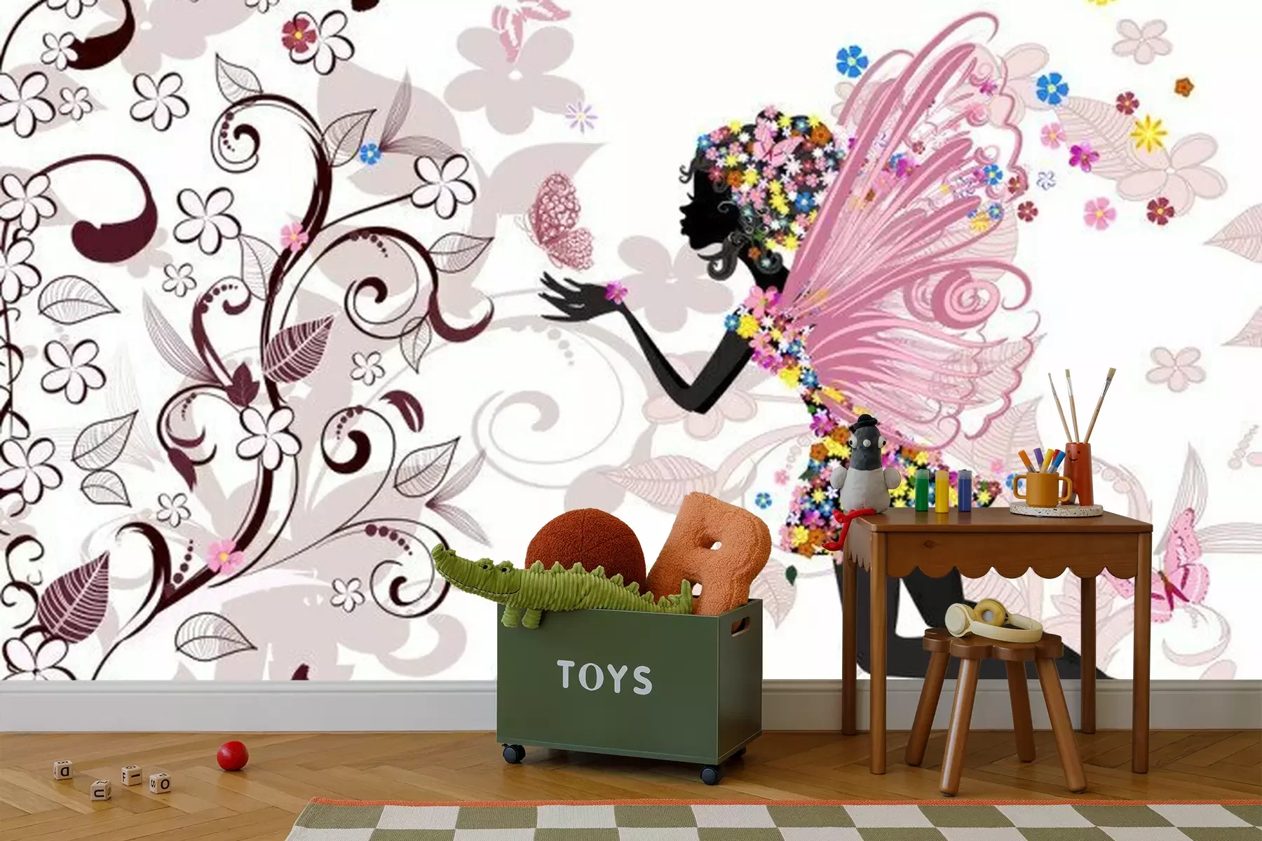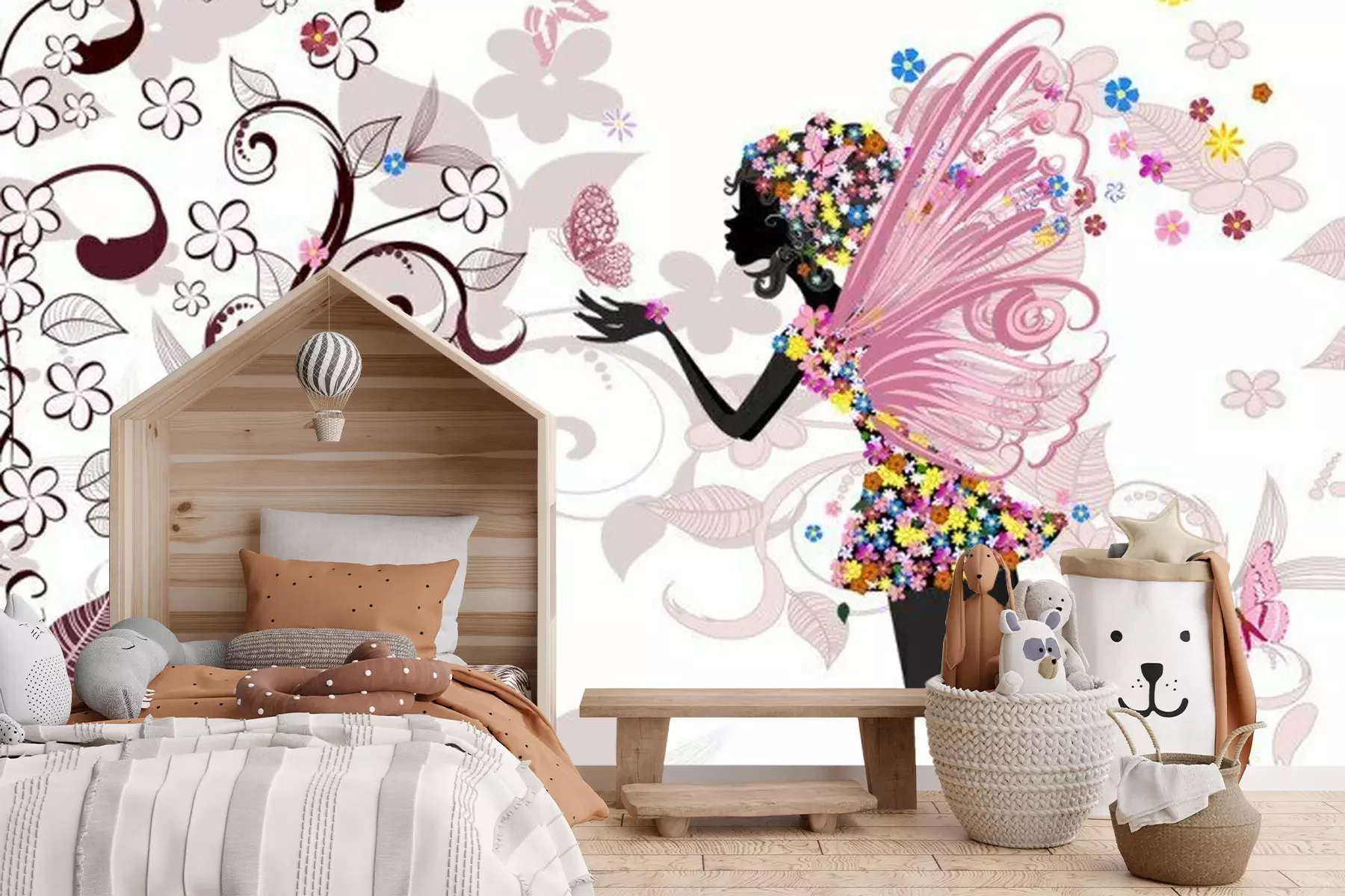 Blumen-Fee mit SchmetterlingFototapete
