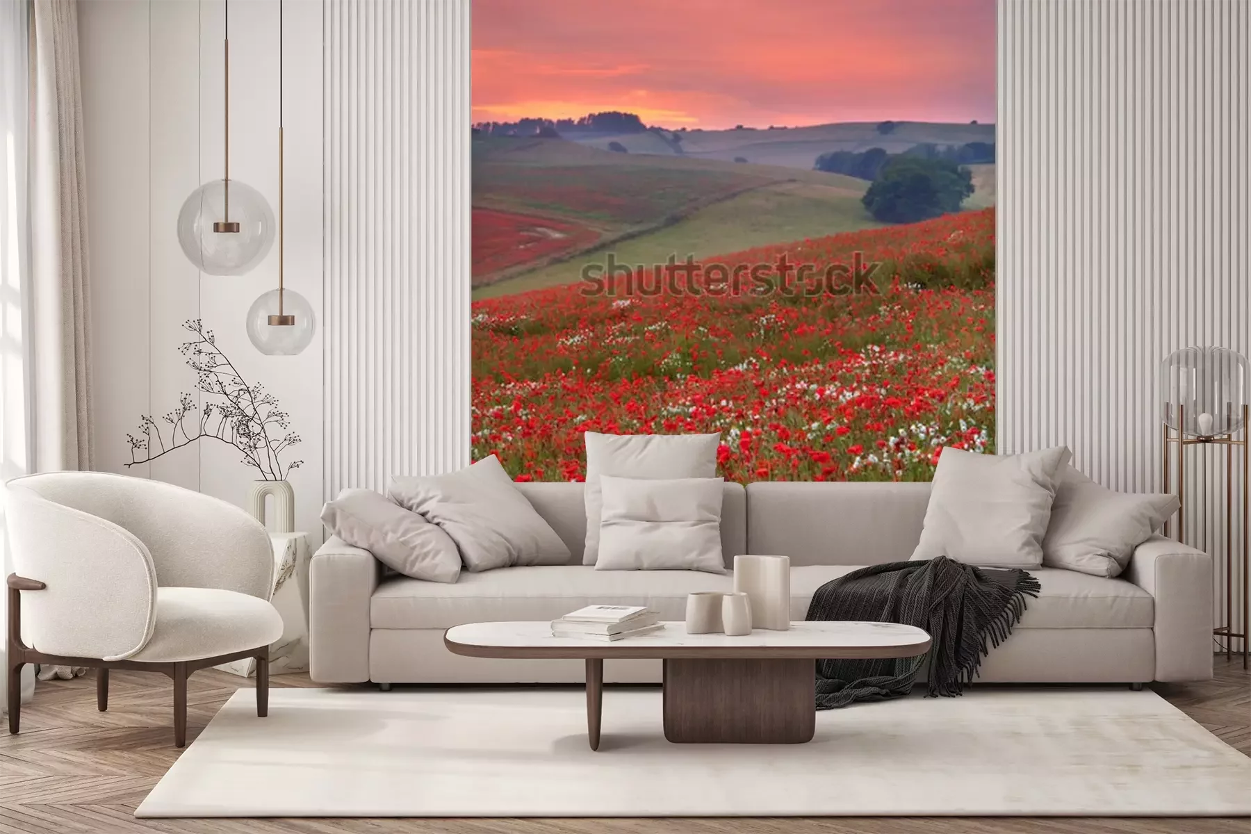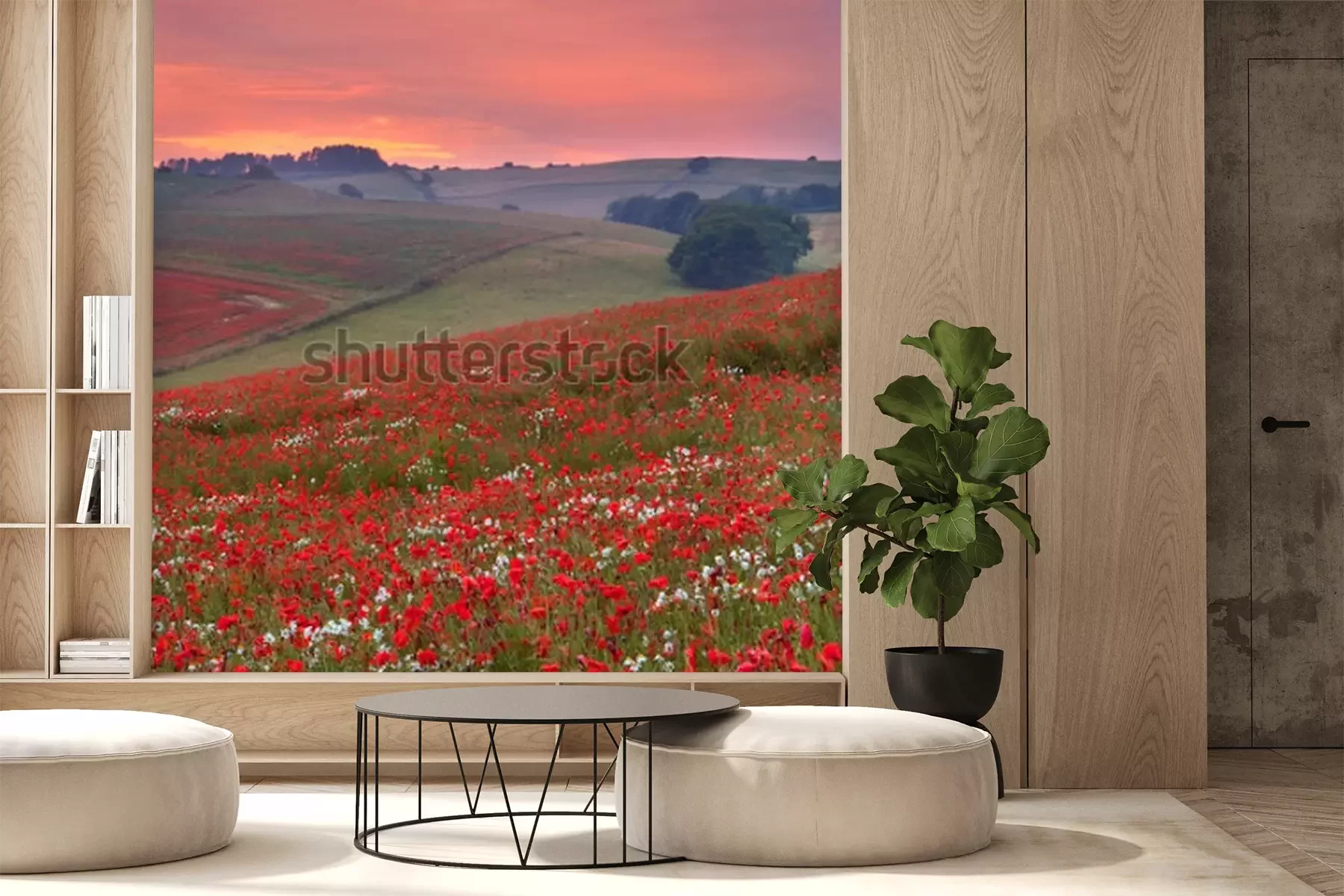 Fototapete Blumenfeld bei Sonnenuntergang