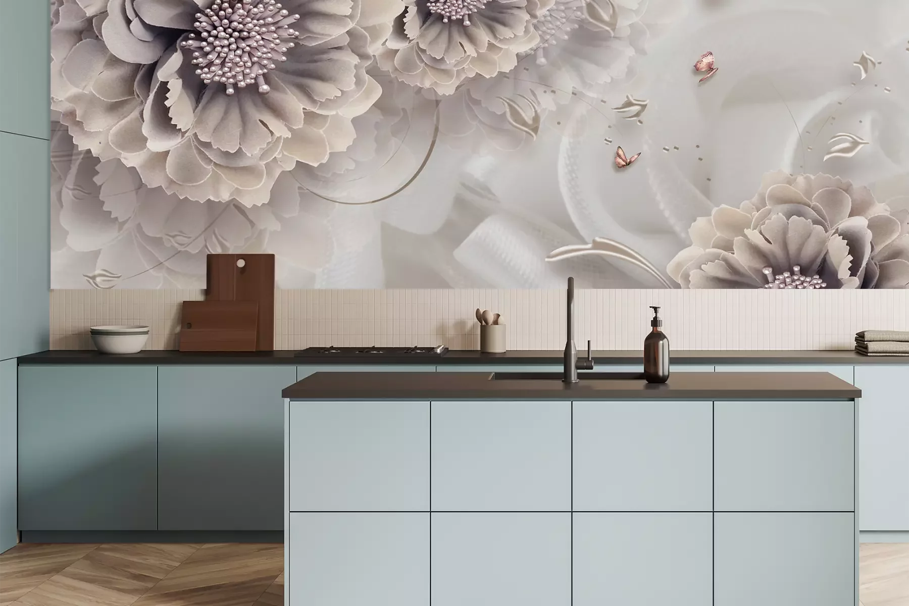 Das Material Premium besteht aus einer glatten Vinyl-Oberschicht und einem Trägermaterial (Vlies), das dehnungsfest und verformungsbeständig ist. Es ist dampfdurchlässig und atmungsaktiv. So können solche Fototapeten in Küchen und Badezimmern verwendet werden. Bei Verschmutzung kann das Material mit einem feuchten Tuch abgewischt werden. Die maximale Breite einer Tapetenbahn beträgt 95 cm oder 105 cm – je nach Verfügbarkeit. Unsere Fototapeten sind für die Tapeziermethode auf Stoß konzipiert. So erzielen Sie einen ästhetischen Effekt ohne sichtbare Fugen. Das Auftragen des Klebers auf die Wand macht die Anbringung der Fototapete schnell und bequem.