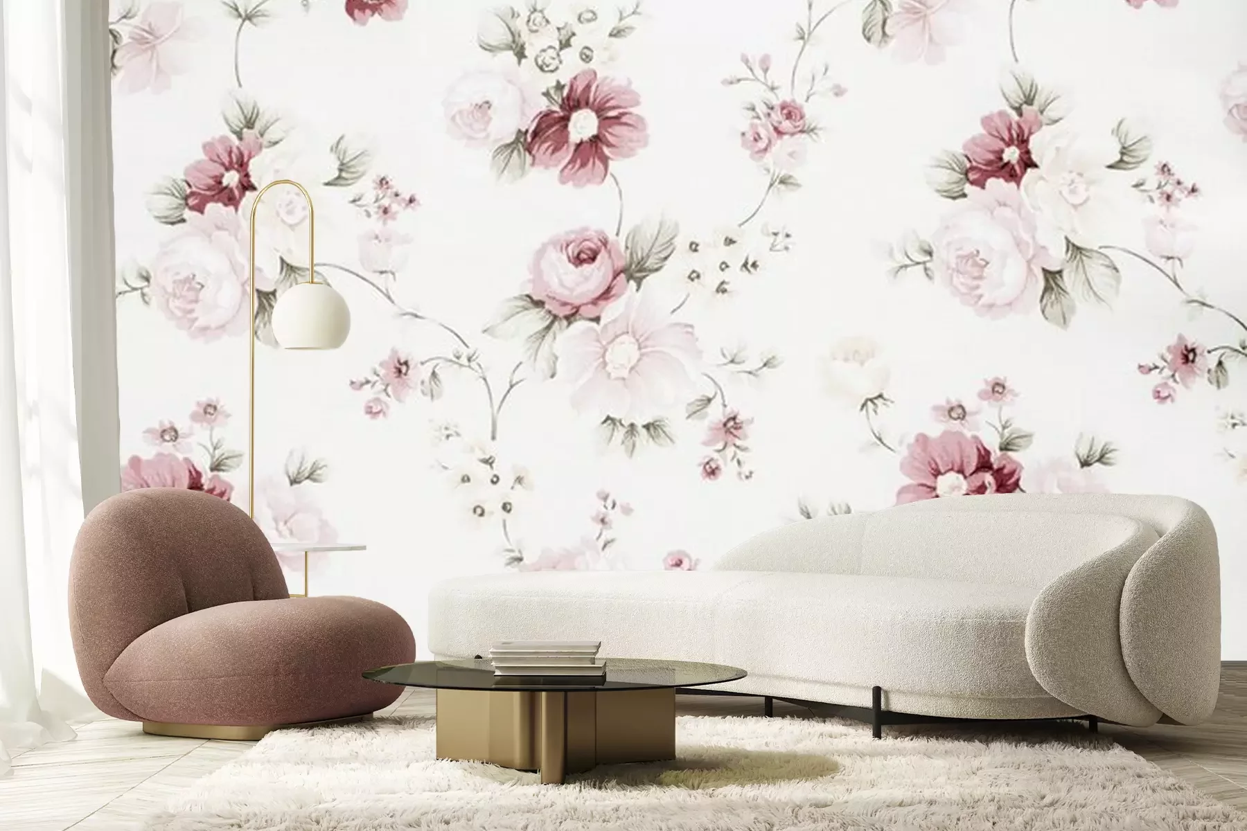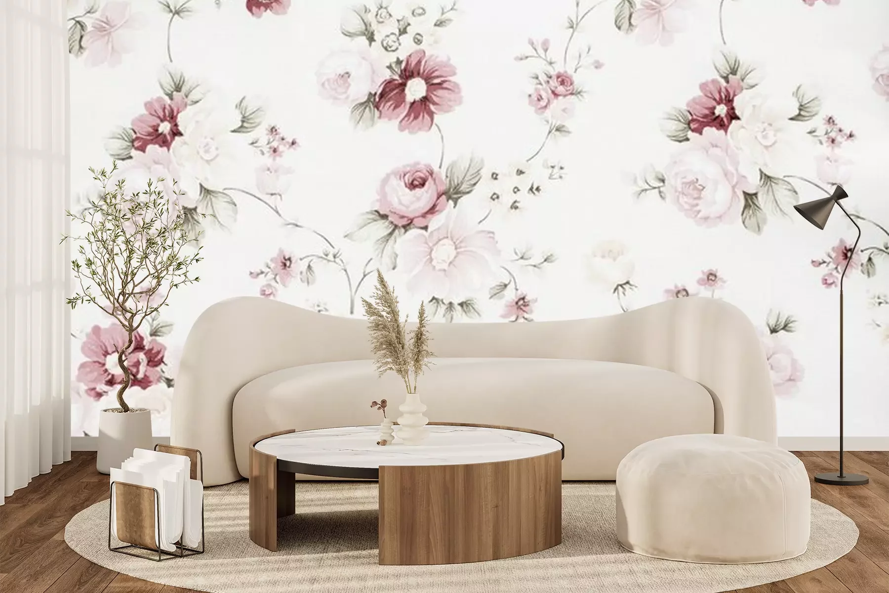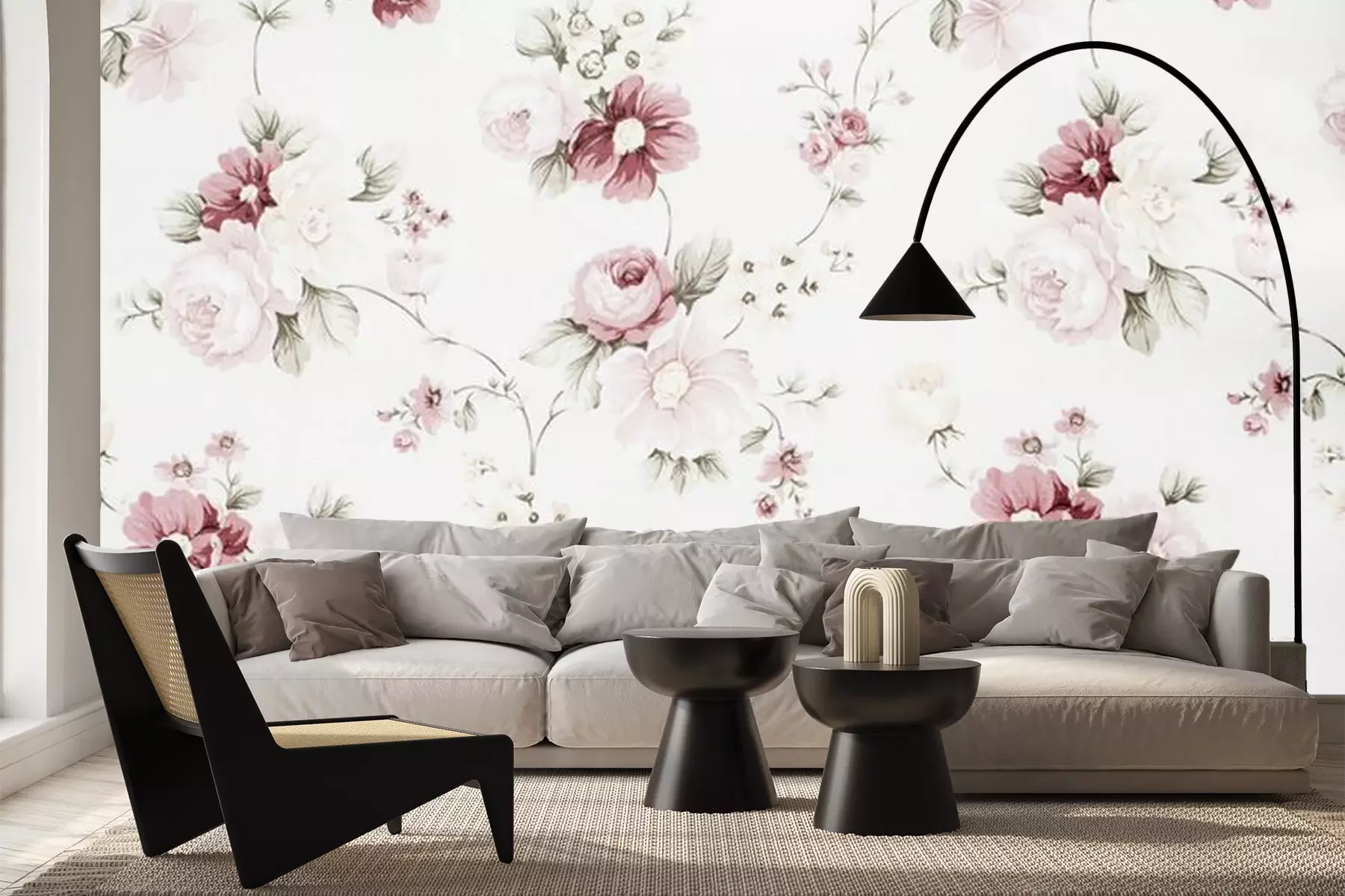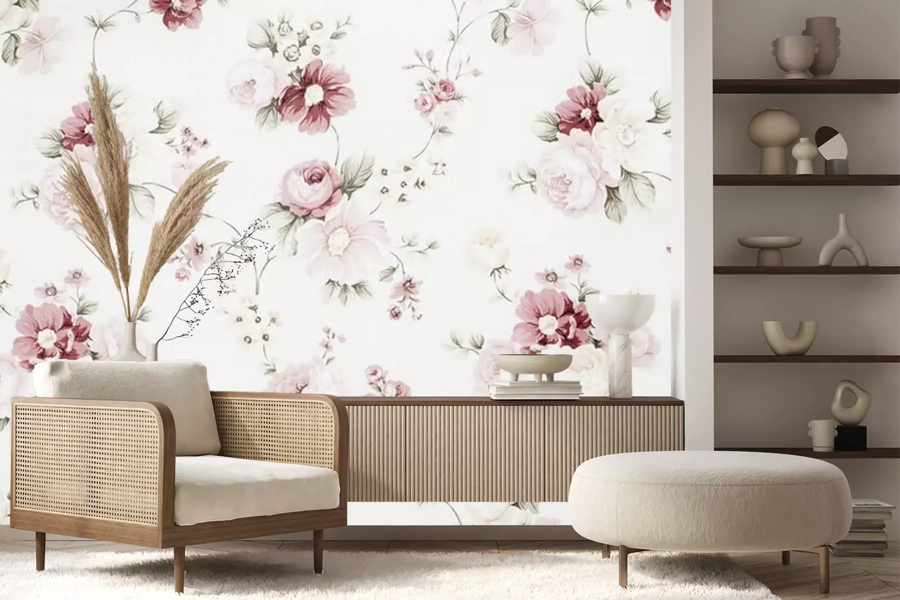 Fototapete Blumensträuße aus Gartenblumen und Rosen