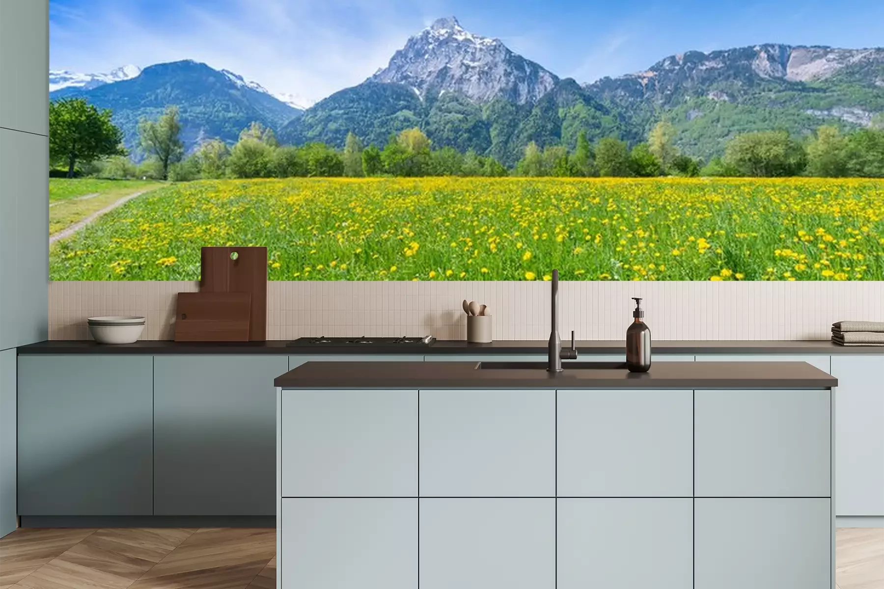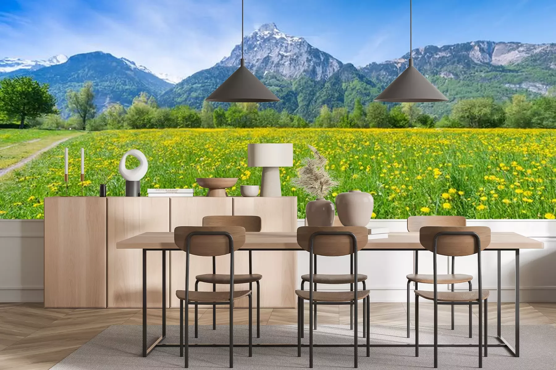 Fototapete Blumenwiese vor dem Hintergrund der Berge