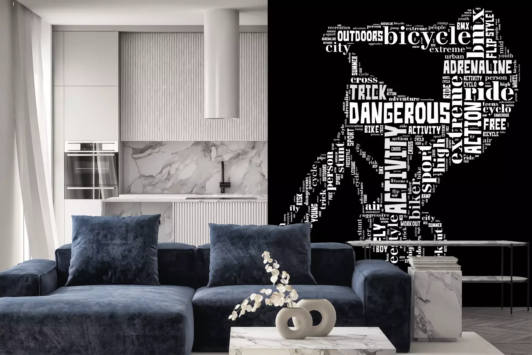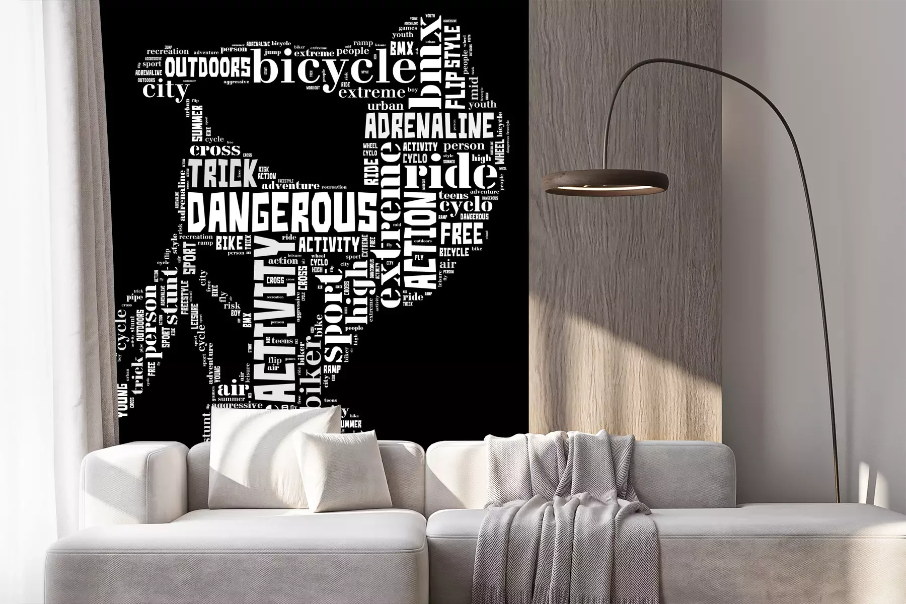Fototapete BMX-Fahrrad aus schwarz-weißer Beschriftung