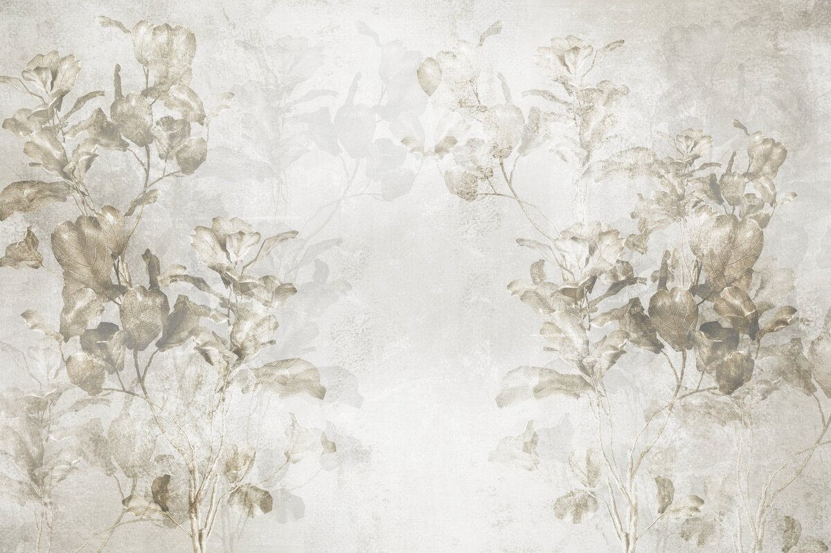 Fototapete: Botanische Blätter auf grauem Hintergrund