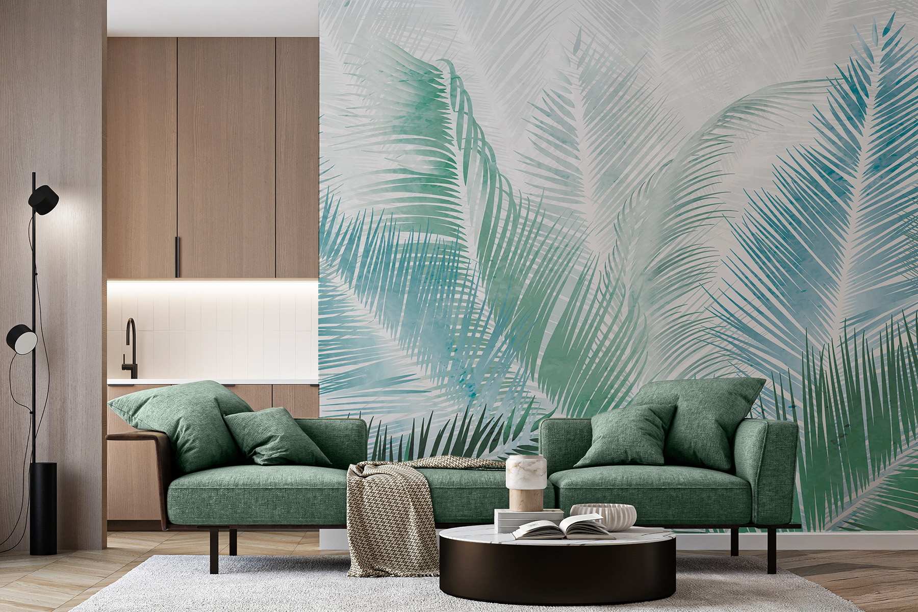 Fototapete: Botanisches Muster blaue und grüne Palmblätter